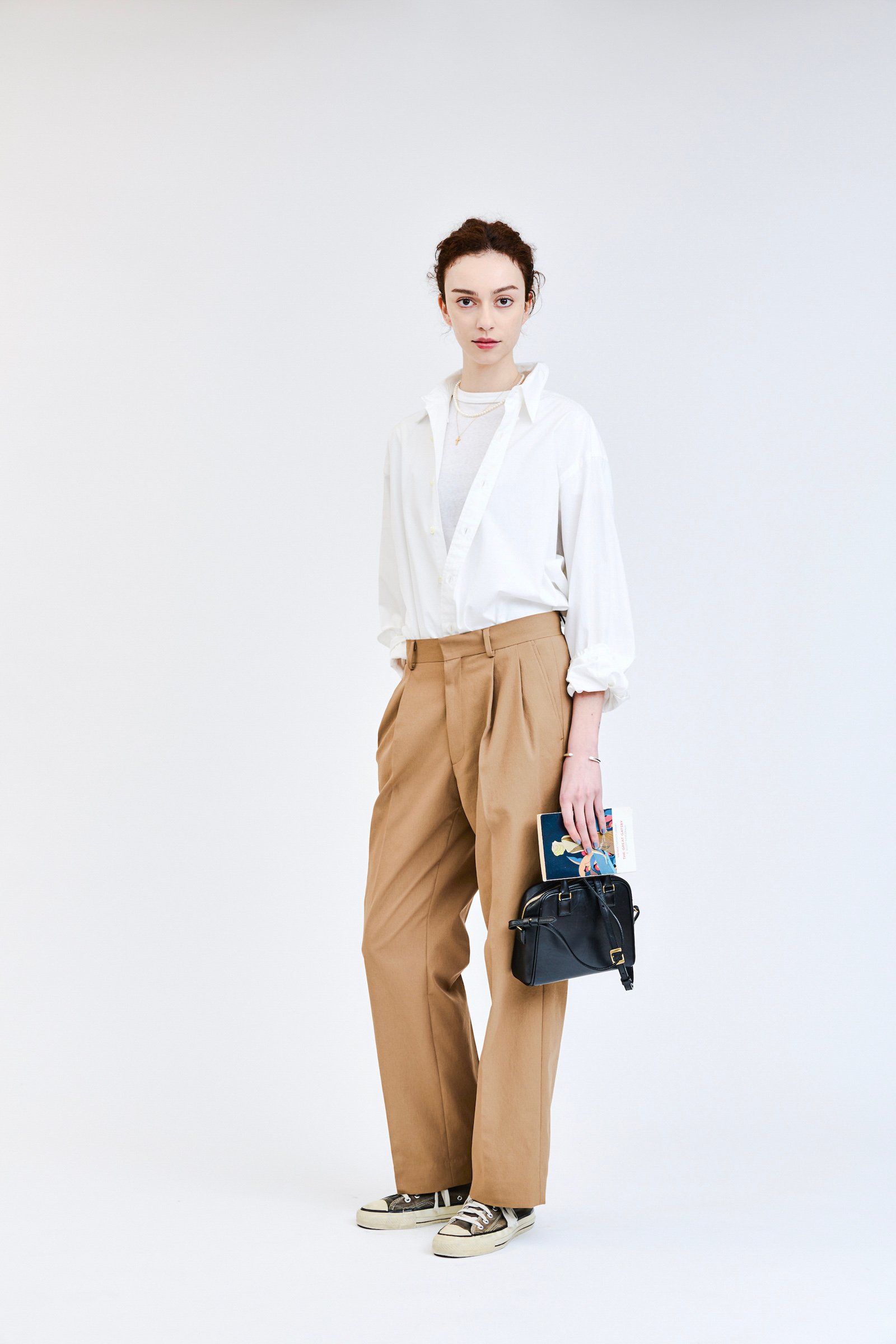 オープンを記念し、同店では「ジョンズ クロージング(Johnʼs Clothing)」に別注した廃棄デニムによるコレクションとして、デニムジャケット(6万8200円)とデニムフレアパンツ(3万9600円)、デニムペインターパンツ(4万1800円)を展開。それに加え、コットンリネンの残反生地で制作した定番のスラックス「クライスラーパンツ(CHRYSLER PANTS)」(2万900円/いずれも税込)も販売する。