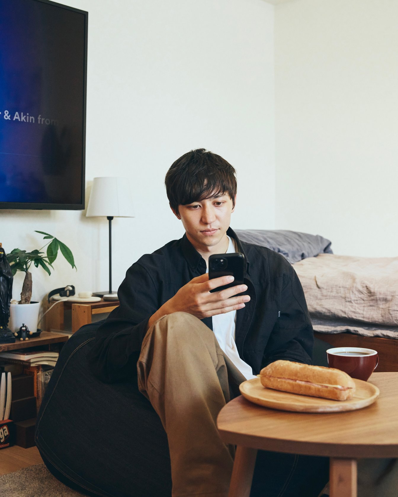 朝は大好きなパンと一緒に、同じく大好きなコーヒーを。これから新しくカフェを始める予定なので、さまざまなコーヒー豆を試している最中です。おいしいコーヒーを淹れられた時はやっぱり気分がいいし、一日が気持ちよく始まる。音楽も含めて肩肘はらない感じで好きな空間に浸って、“自分自身”を心地よくするのが重要な気がしています。