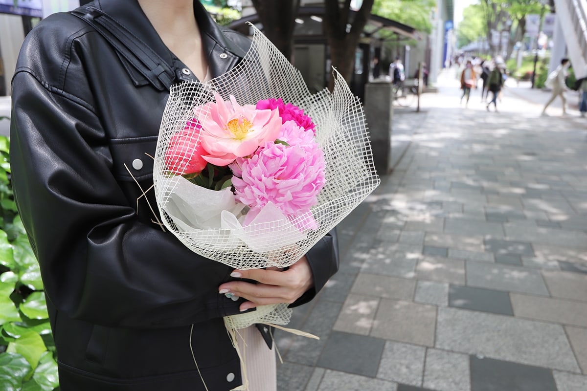 表参道・原宿には花が似合う。有名店から個性あふれるお花屋さんが点在しているためか、花束を持って街を歩く人の姿も珍しくない。その手にブーケがあるだけで、いつも歩く見慣れた景色も違って見える。一方で、表参道・原宿という街のフレームが一層、花の魅力を際立たせてくれるような気がする。花束と表参道・原宿の景色を重ねて、贈る誰かを想像したり飾る場所を考えたり。気持ちを咲かせる、花と街の風景。