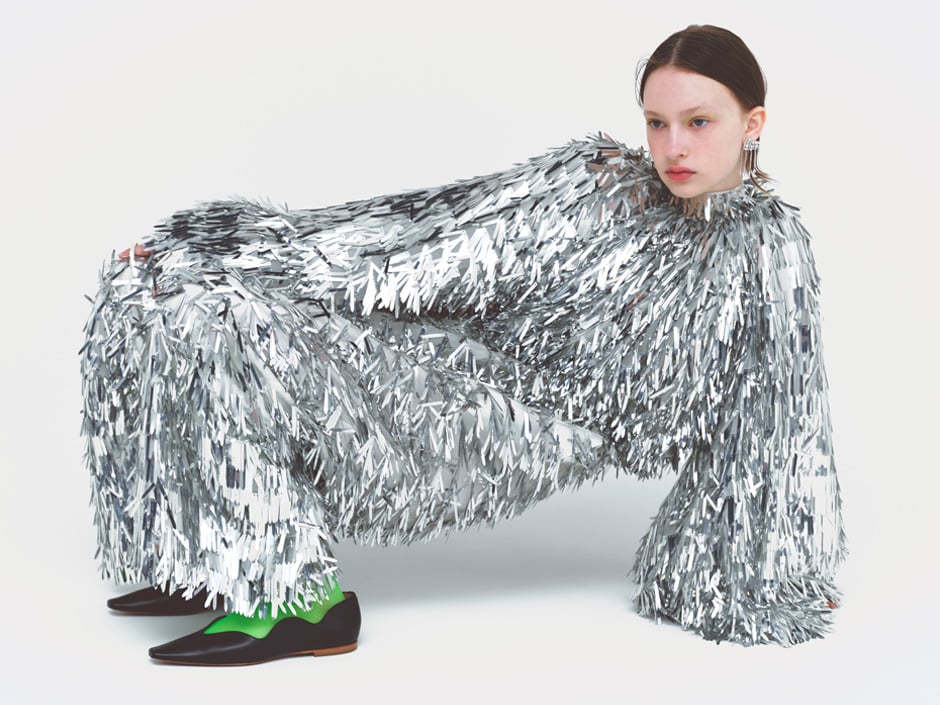 jumpsuit ¥176,000 by VIVIANO, shoes ¥57,200 by PELLICO UNITED ARROWS ROPPONGI HILLS, earcuff ¥3,056,000 reference price by THE FUTURE ROCKS H3O FASHION BUREAU, socks stylist's own, Real Flawless Weightless Perfecting Foundation 0C1 ¥6,820, Blush Color Infusion 07 ¥4,180 and Petal Soft Lipstick Crayon 382 ¥3,850 by LAURA MERCIER LAURA MERCIER JAPAN
