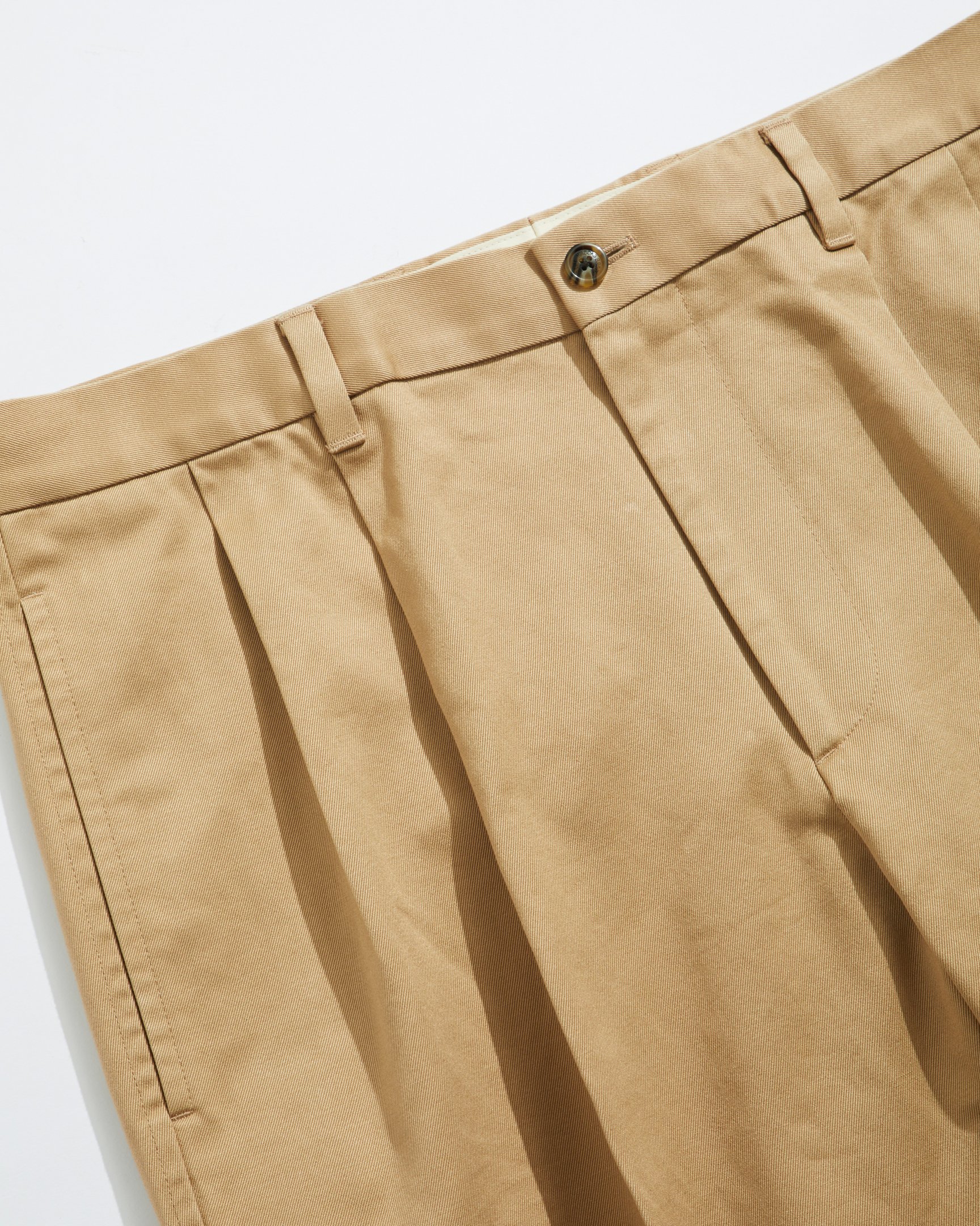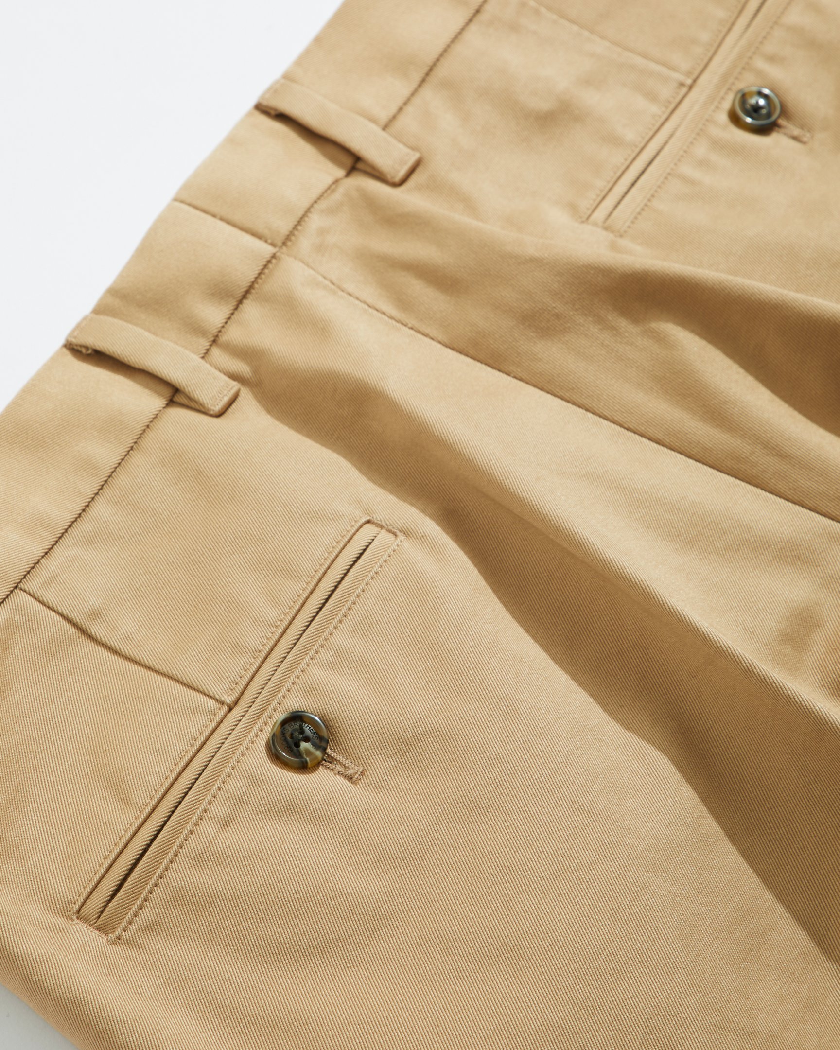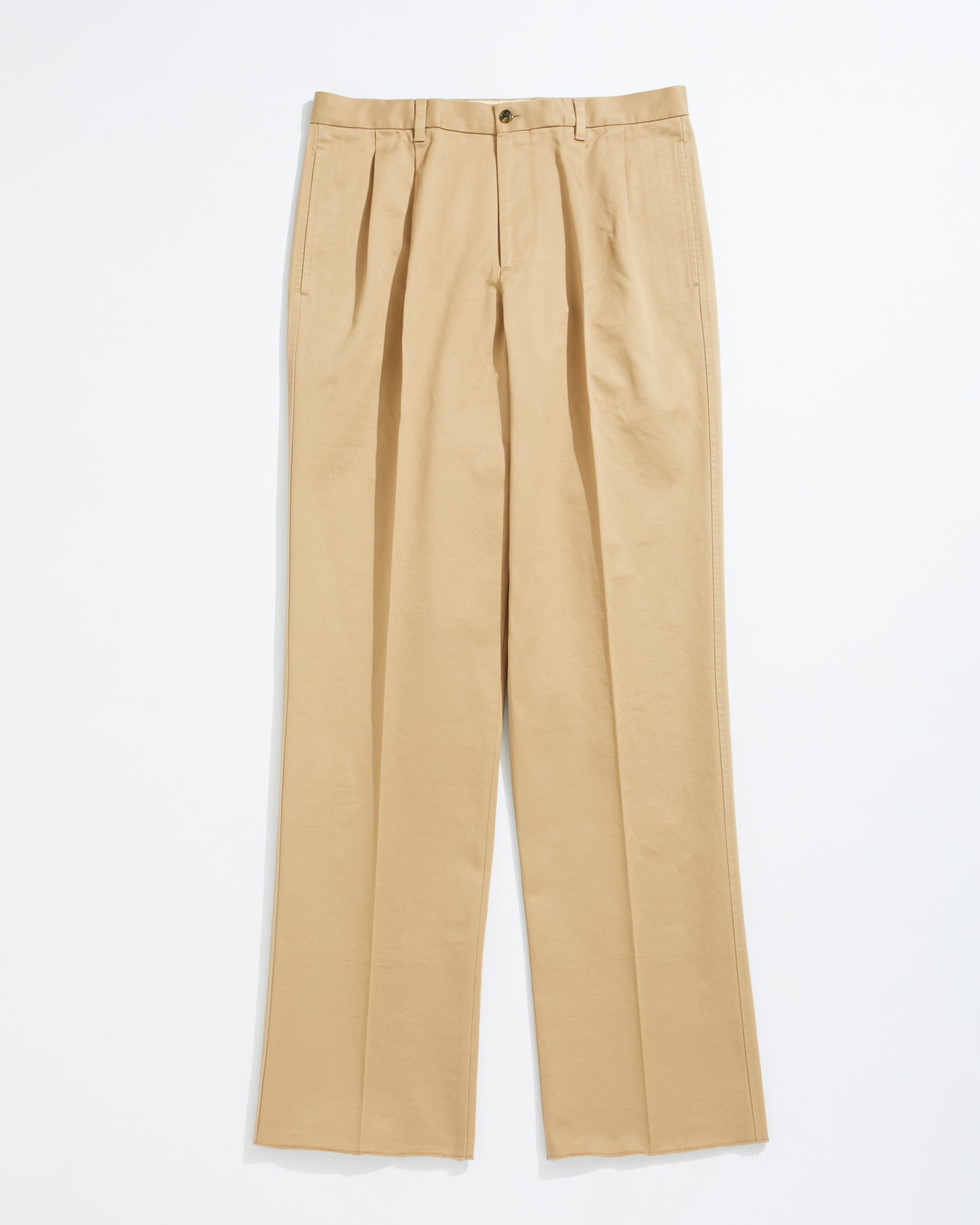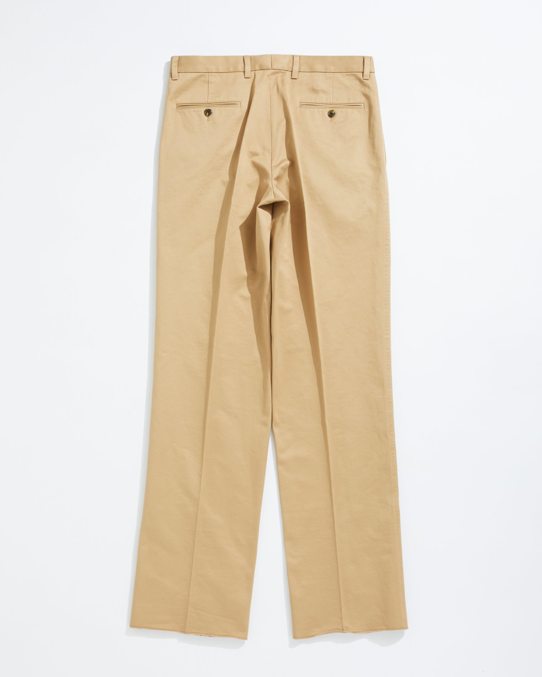 生地はスラックスのような上品な佇まいになるよう、硬めのチノクロスを採用。カラーはナチュラル、ベージュ、ネイビーの3色を揃え、サイズは30〜36の4種類を用意する。価格は各税込3万800円。