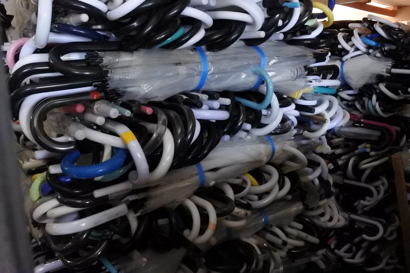 「ビニール傘は、『回収→解体→洗浄→プレス』と4つの工程を経て、新たな素材へと生まれ変わります。4つの作業は別々の工場で熟練した職人の元で行われています。素材となる廃棄ビニール傘は、全国各地のご協力いただいている業者様やブランドとしての取り組みで個人のお客様から不要になったものをお送りいただき回収しております。