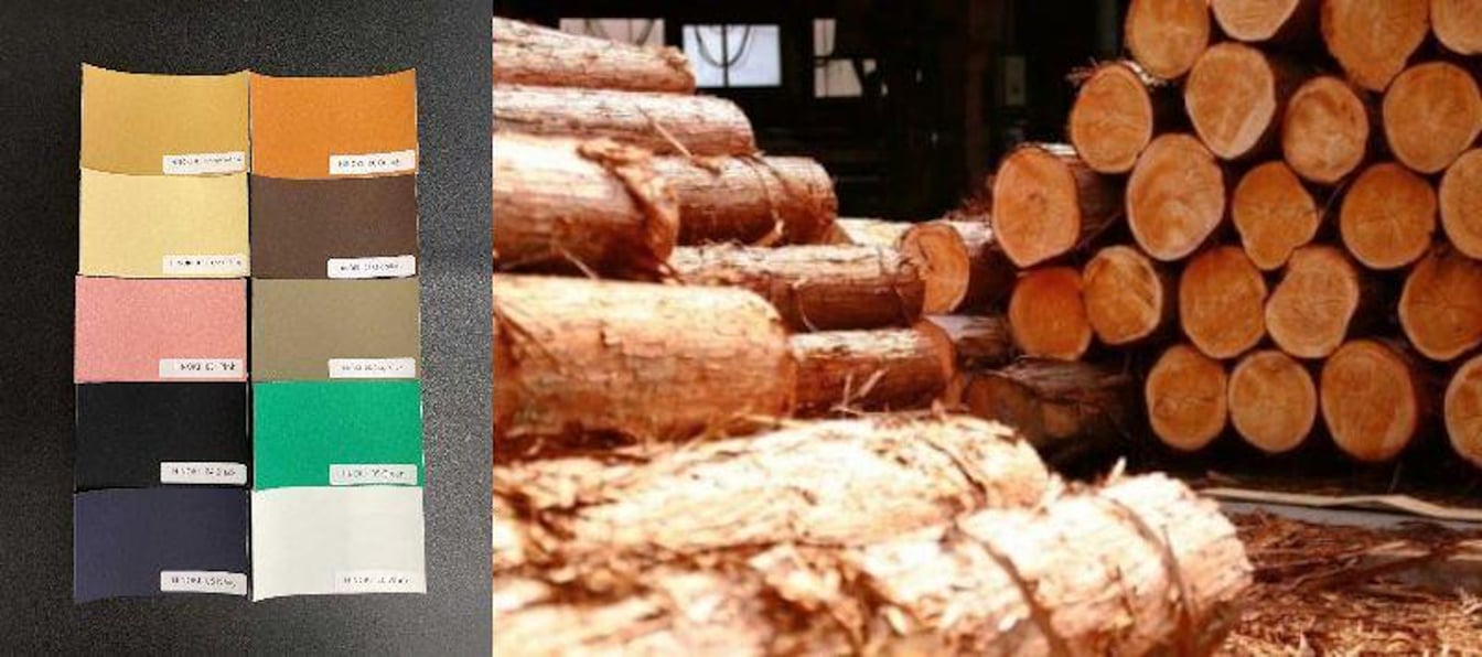 表:ヒノキ18%PU82%裏:レーヨン35%ポリエステル65%を配合。カラーは10色を揃える。ヒノキレザーは永井撚糸株式会社のオリジナル商品