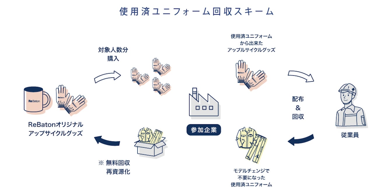 ReBatonは、2023年4月のサステナブルファッションEXPOにて初お披露目されたため、具体的な活動はこれからだが、取引先の企業からは「自分たちが排出したユニフォームがどうなるか、また具体的な商品になっていることが今までにない取り組みだ」とおおむね好評とのこと。また、自社でユニフォームの採用はないが、ユニフォームを着ているクライアントを抱える金融機関や企業では、プロジェクトに参加することで新たな支援サービスのひとつとして紹介したいとの声も届いているそうだ。「数社の企業から排出された使用済みユニフォームを集めて再資源化し、アップサイクル品をプロジェクト参加企業・賛同企業へ販売するReBatonは、対象をユニフォームに限定したことで実現した“身の丈に合ったサーキュラーエコノミー”(サークル)だと考えています。モノづくりをするメーカーの「作ったものの回収」とは異なり、流通業の責任として『売った時に回収する』という考えのもと進めているプロジェクトとなっています」