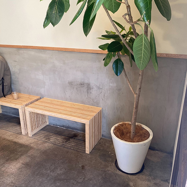 お店の外にもベンチが…!こちらは1つしかないですが、運が良ければ座ることができるかもしれません。