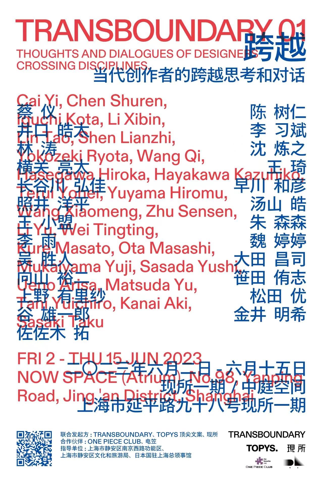 上海のクリエイティブSOHO型商業施設現所で、「TRANSBOUNDARY 01 跨越——当代创作者的跨越性对话和思考」が開催される。日本と中国20名を超えるクリエイターの作品を展示したりトークショーを行ったりすることで国境や思考をクロスオーバーされる試みのイベントとなっている。会期は6月2日-6月15日。