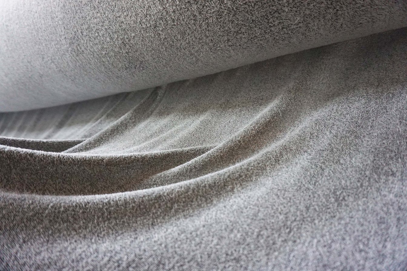 「このフランス製のヴィンテージ編み機を作るメーカーは第2次世界大戦後になくなってしまうのですが、そのときに3台を大阪のニッターさんが日本に輸入しました。そのうち1台はもう壊れてしまい、古い機械なので直せないまま廃棄になってしまって、今は世界で2台しか残っていないという状況です。この編み機は両面パイルを作るためのもので、従来のものとは編み地も違い、良質な風合いのパイル生地が作れます。そして出来上がったパイル生地は肌触りが全然違います。HOLIDAY TRUNKSではオリジナルの両面パイル生地ですべてのアイテムを作っているのですが、この生地は限界まで細い糸で編まれています。従来のパイル生地はボリュームを出すために糸を太くするのですが、HOLIDAY TRUNKSはアンダーウエアブランドになるのでボトムを履いた場合でもごわつかない限界の糸の細さにしています。かつ、ふくらみがありソフトな肌触りを損なわないようにこの生地にたどり着くまでテストを繰り返し1年ほどの月日を費やしました」