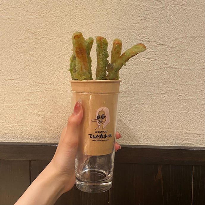こちらは「ちくわ磯天」(税込429円)。長めの磯天は、キュートなグラスに入っています。