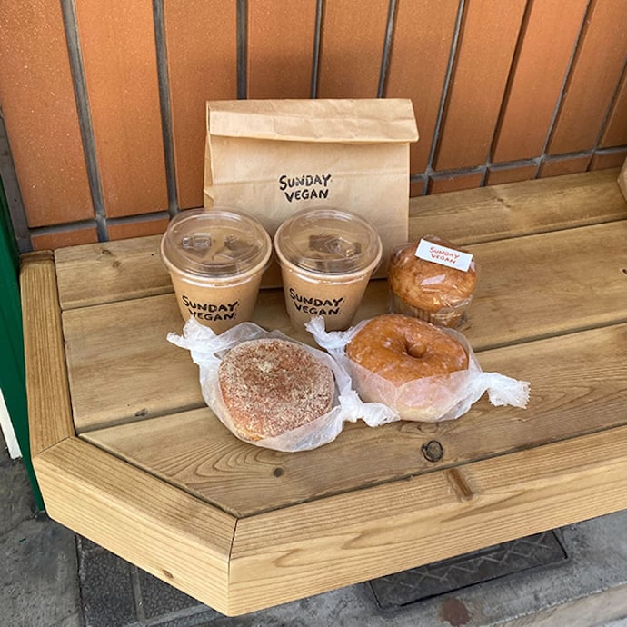 「フラミンゴ 吉祥寺店」から徒歩1分の場所には「SUNDAY VEGAN(サンデーヴィーガン)」という、NEWオープンの大注目カフェが…!古着店巡りを終えて、一息つきたい時にぴったりなドーナツのお店です。