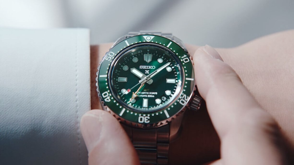 大谷翔平選手が着用した「セイコー プロスペックス 1968 メカニカルダイバーズ 現代デザイン GMT」は深みのあるグリーンのダイヤルと、耐傷性に優れた艶やかなセラミックのベゼルが特徴のモデル。1968年発売のヒストリカルモデルをベースとした、3日間のロングパワーリザーブとGMT機能を備えるプレミアムスポーツウォッチだ。価格は209,000円。