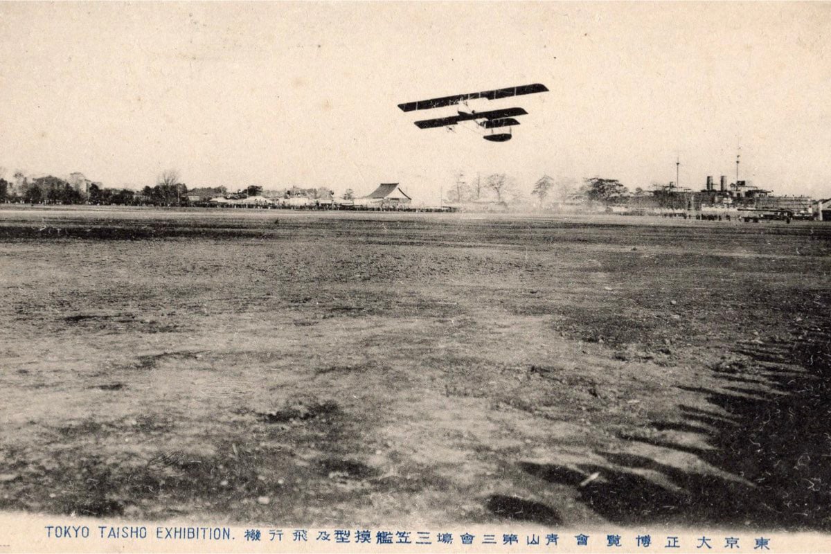 大正3年(1914年)東京大正博覧会で航空ショーを行った際の青山練兵場 (提供:ジャパンアーカイブズ)
