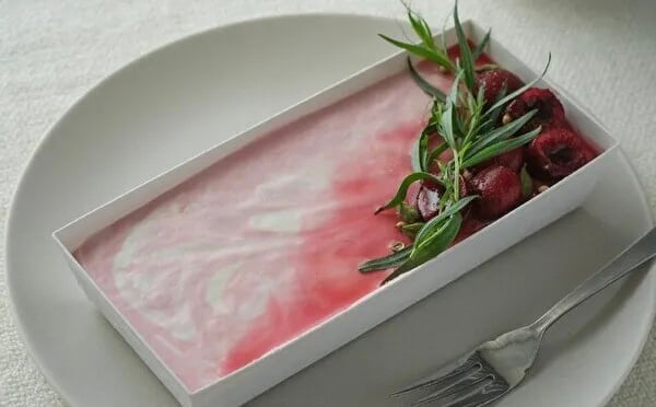 「レアチーズケーキBOX さくらんぼ」(税込2700円)は、旬のさくらんぼが贅沢に使われたマーブル模様のレアチーズケーキに、深い甘味が特長のブラックチェリー、ミントやスパイスを合わせた風味豊な自家製シロップソースを組み合わせ。