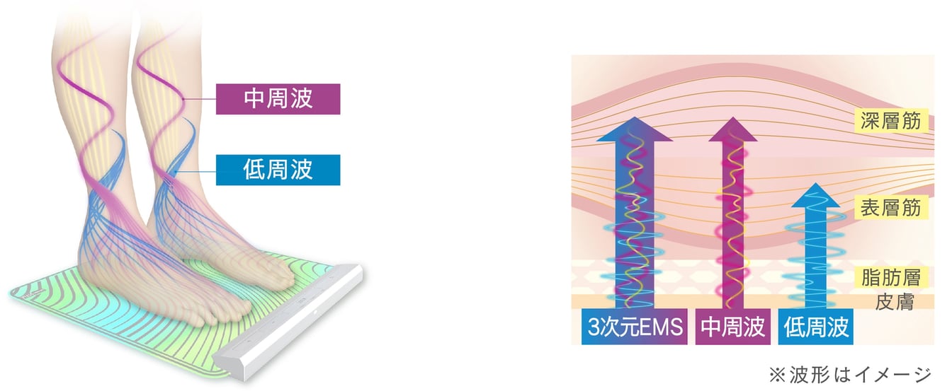 低周波と中周波を組み合わせて筋肉に深く広くアプローチする
