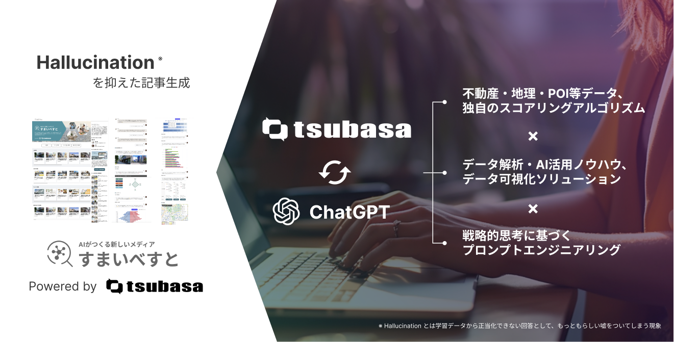 問題視されている中、同社は法人向けAI・デジタルソリューションや独自の研究開発で培ってきたデータ解析・AI活用ノウハウを活かし適切にデータを活用することにより、「Hallucination」を抑えて正確性を担保した記事生成を達成し、商用化を実現しました。