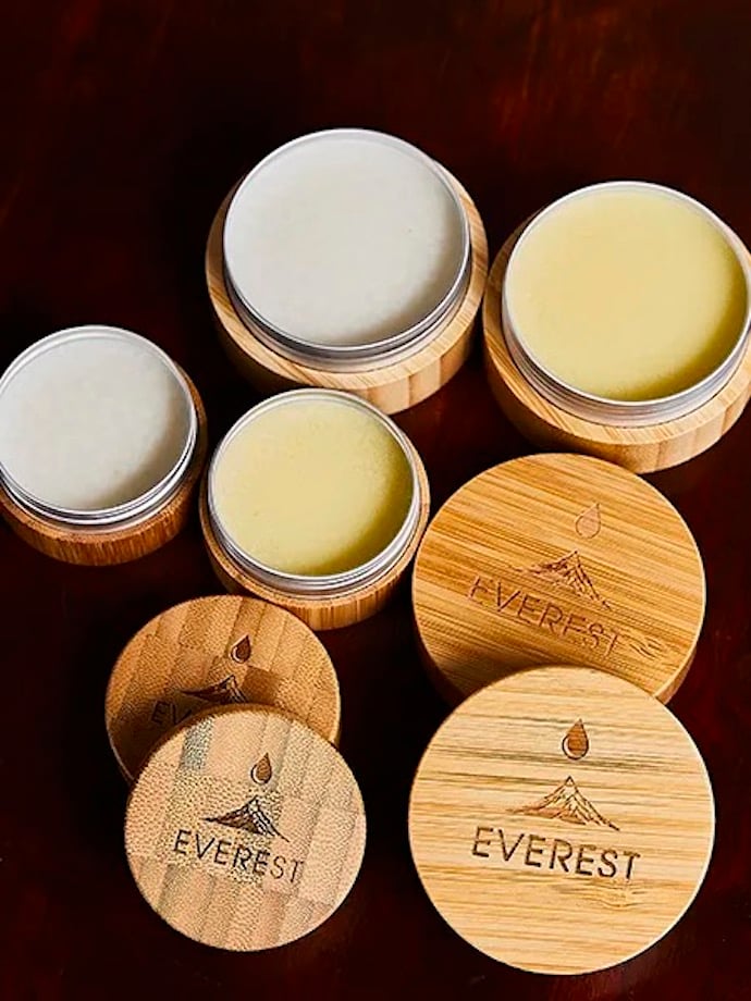 ほかのプロダクトとは異なる見た目の「エベレストバーム」(税込2200円/20g、税込2970円/40g)は、顔・体・髪のどこにでも使える保湿バーム。