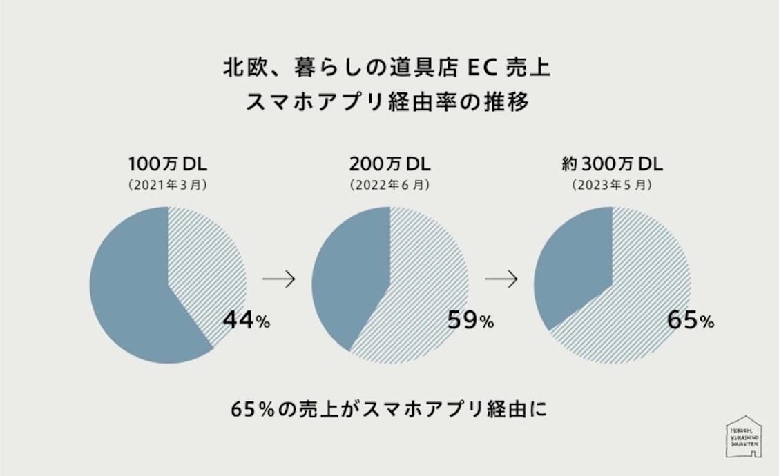 繊研plusクラシコム(東京、青木耕平社長)が運営するECサイト「北欧、暮らしの道具店」のスマホアプリが、20年4月の提供開始から、約3年で300万ダウンロードを突破した。