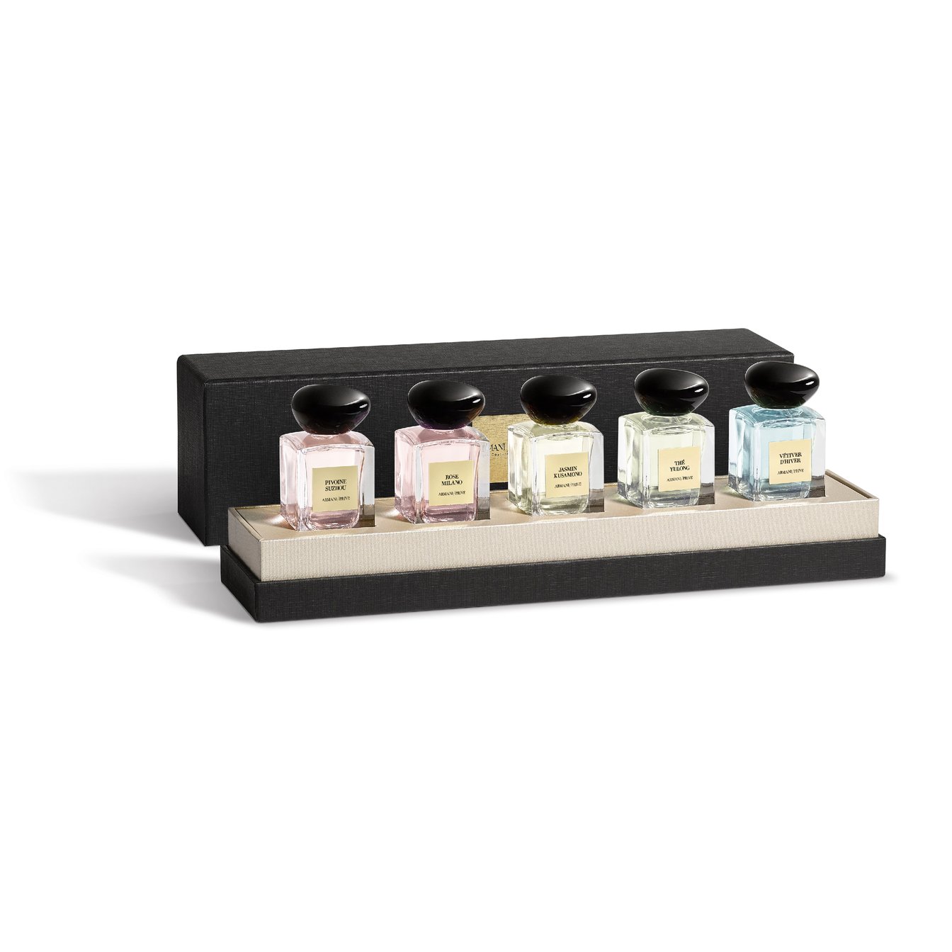神話に登場する香料を再現した「ラ コレクション(LA COLLECTION)」、花々と緑をブレンドした爽やかでみずみずしい香りの「レゾー(LES EAUX)」、アルマーニ氏が感銘を受けた文化や土地との物語を描いた「レ テール プレシューズ(LE TERRES PRÉCIEUSES)」、中東の旅の感動を表現した「レ ミレユヌ ニュイ(LE 1001 NUITS)」といった4つのシリーズで、エントリー層からフレグランス愛好者まで納得できる幅広い香りを揃えている。