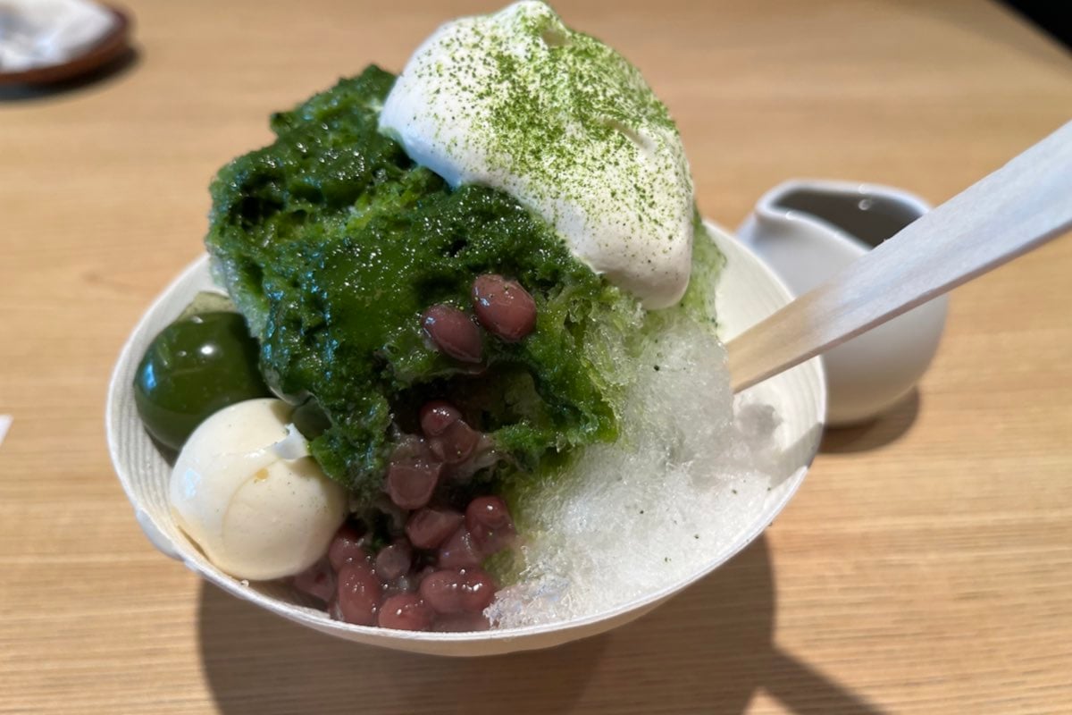 毎年そう思うんだけど、一口食べて驚くところまでが一連の流れ。しっかり甘くておいしいのだ。しかも自然の果実由来の甘味料なので、甘すぎず食べやすいのが嬉しい。抹茶には「羅漢果」を煮詰めた茶蜜がついてくるのでお好みで。そのままでもおいしいけれど、抹茶シロップとの相性は抜群でその奥行きのある甘さと味わい、茶蜜の香りにハマること間違いなしだ。