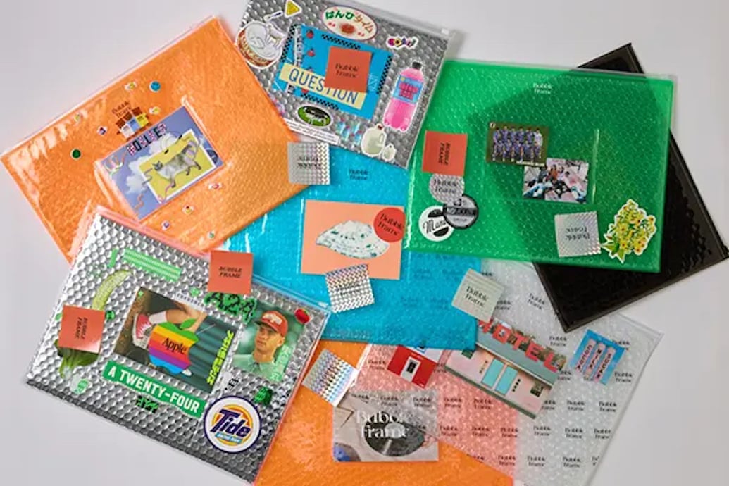 「BUBBLE FRAME」が展開する「バブルラップケース」(税込1980円~)は、プチプチとPVCで構成されています。
