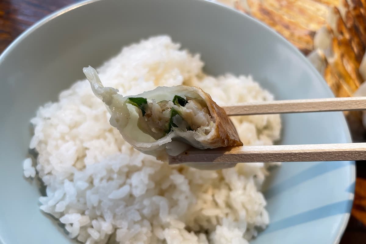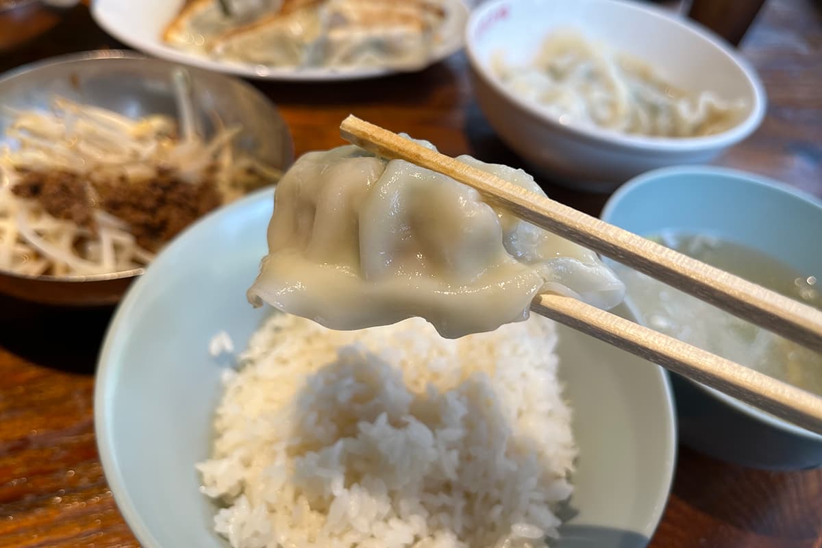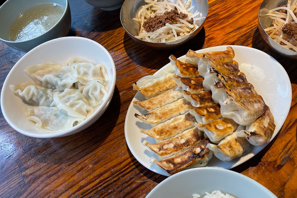 一つひとつは小ぶりだけど、タネがぎっしり詰まっているので焼餃子・水餃子ともに満足度が高い!