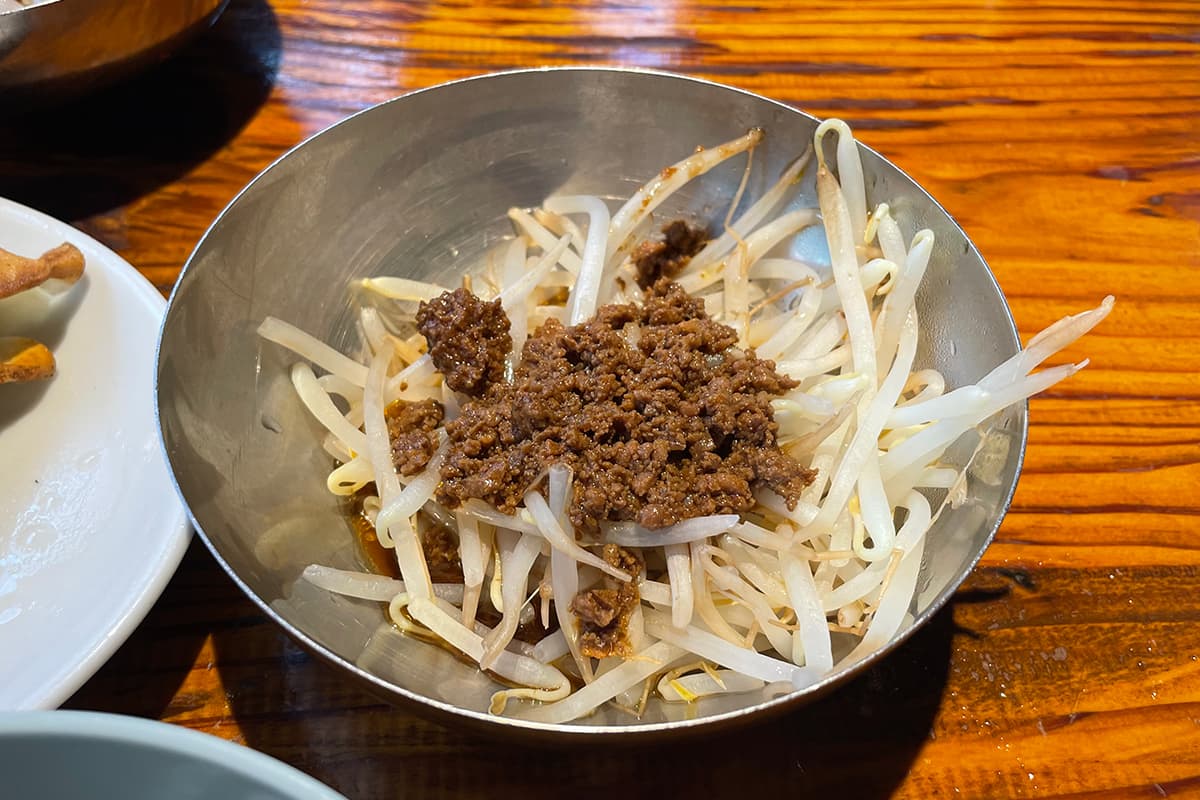 個人的に大好きなのは、こちらの特製肉みそ付もやし。これだけで十分ご飯がススム。生姜スープはさっぱりした味わいで、箸休めにぴったり。