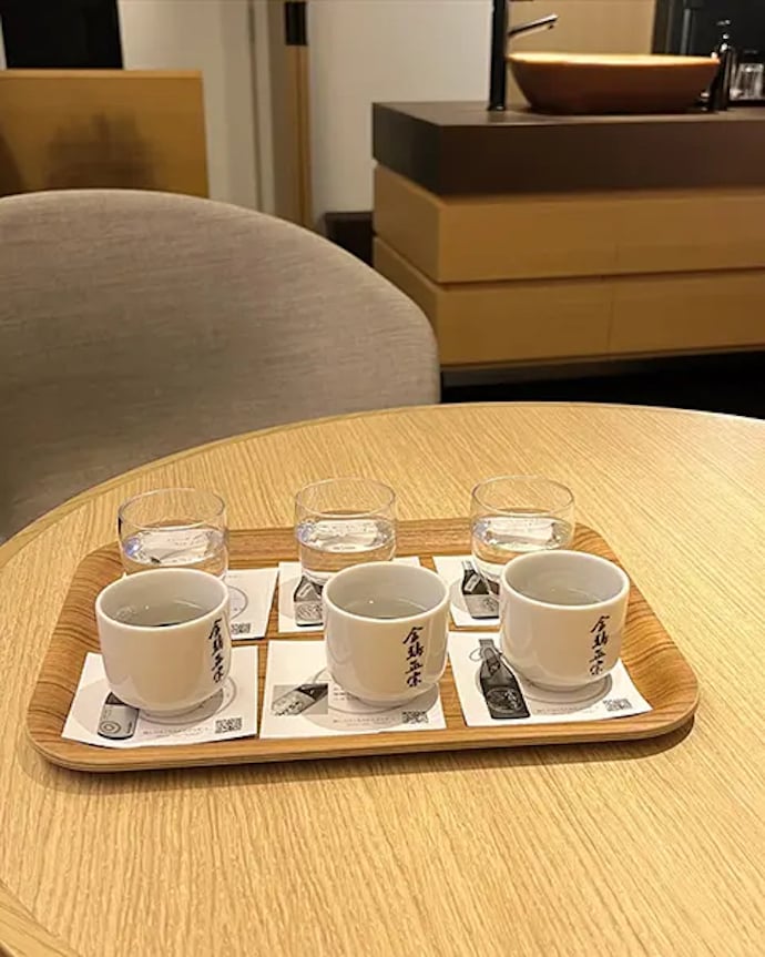 日本酒はトレーを使ってお部屋に持って行き、ゆっくり飲み比べするのがおすすめです。