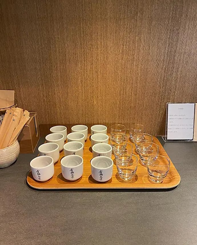 ラウンジでは、無料で六種類の日本酒を飲み比べ!