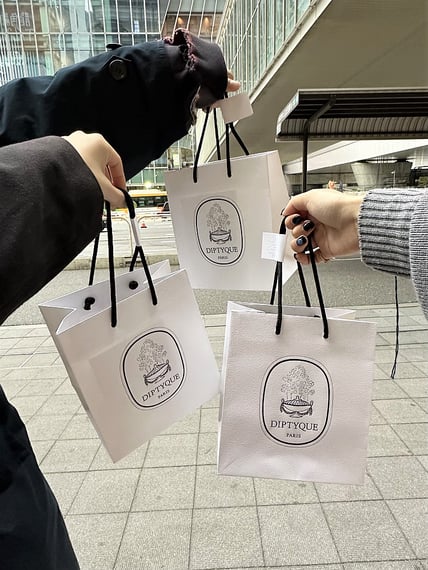 初任給の給料日はちょうど休みで、仲の良い同期2人と出掛けていた。「せっかくだし買い物しちゃう?」と、学生のころは高くて手が出なかった「ディプティック」の香水を買うことに。色々な匂いをかいでみて、「フィロシコス」という香りを選んだ。甘すぎなくて付けやすく、時間が経つとベビーパウダーのような匂いがするところを気に入っているという。