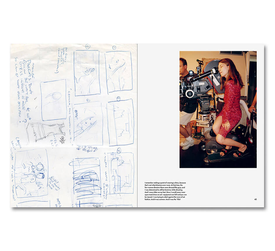 初期の草稿や参考資料のコラージュ、影響を受けたもの、注釈付きの脚本、未公開作品の舞台裏の記録など、彼女の個人的な写真とエフェメラのコレクションで構成され、これまでに手がけた8作品すべてが詳細に解説されている。