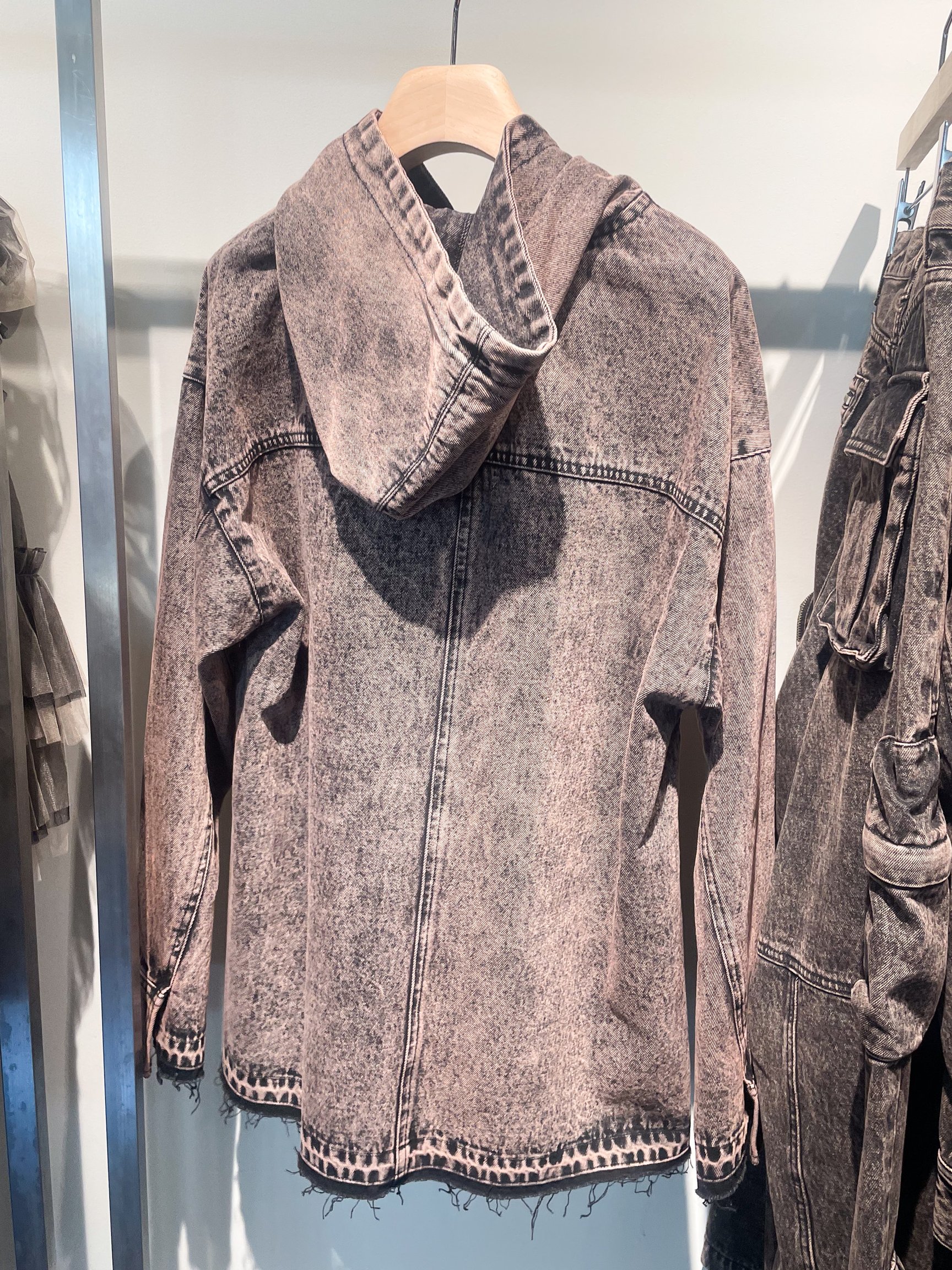 2023年秋コレクションはレーサーやバイカースタイルを着想源に、甘さとモードを掛け合わせたアイテム142型をラインナップ。前シーズンに人気だったジャージー素材を使ったロンパース型のジャケット(3万7400円)を継続して展開するほか、秋シーズンに向けてウールのような膨らみと表情を持たせたポリエステル素材でアレンジした新作を加えた。公式オンラインストアで先行実施している予約販売ではヴィーガンレザーやリアルレザーを使ったアイテムや、ケミカル加工を施したデニムアイテムなどが好評を得ているという。