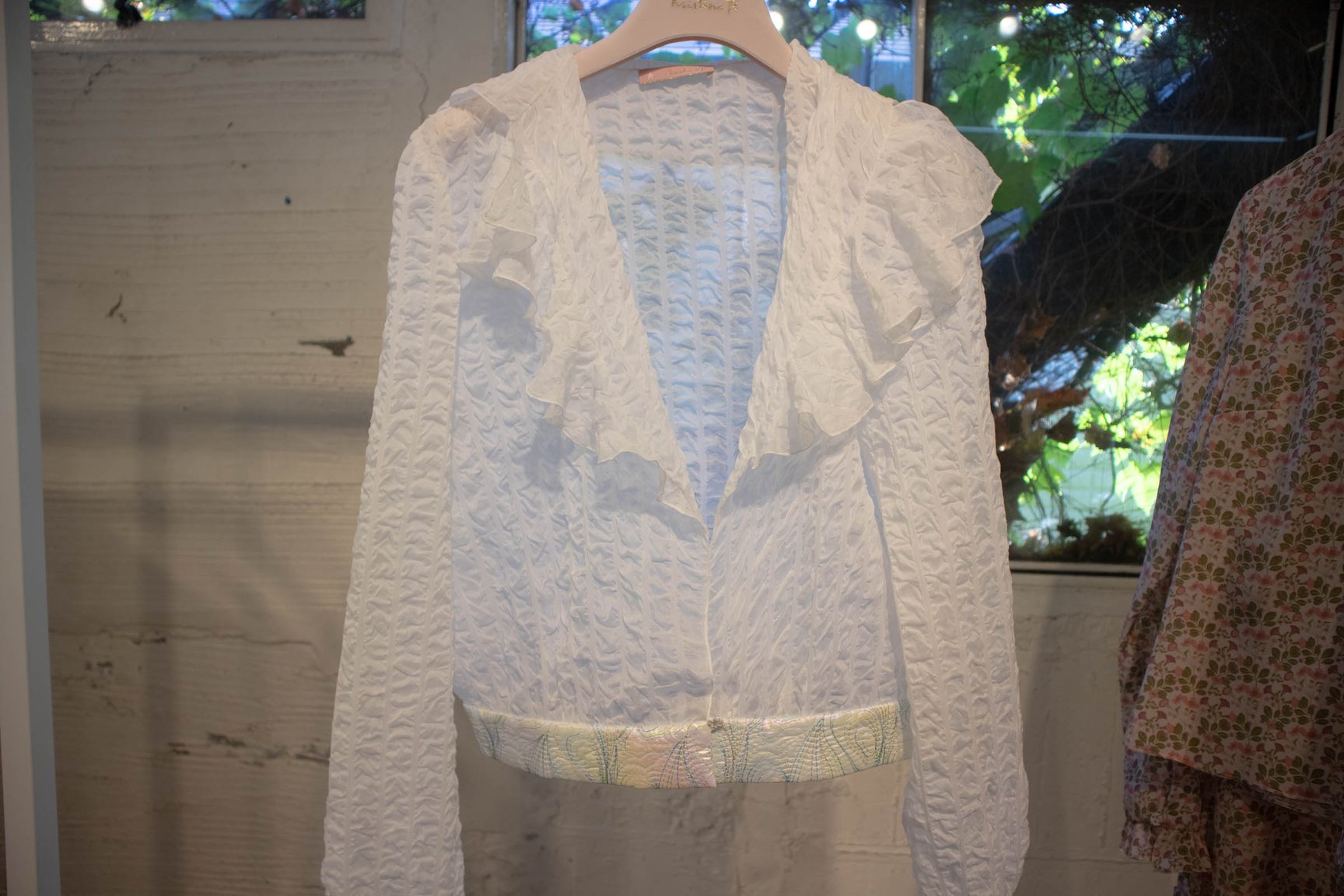 2024年春夏コレクションでは、デザイナーのクリスティーナ・タルディート(Cristina Tardito)が、世界各地を旅して人々や自然と触れ合う中で得たインスピレーションから見出した美の概念を表現。インカの都市の自然と幾何学的な建築の融合や、サバンナのゴールドとグリーンが印象的な色彩などから着想したパステルカラーやゴールドのアイテムを多く揃えた。価格帯は、トップスが約3〜7万円、ジャケットが10万円前後、ドレス類は約10〜13万円程度。