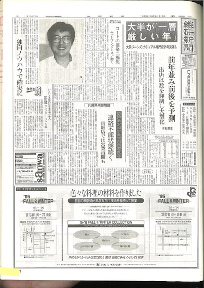 本日、75周年を迎えた繊研新聞社。この歩みの中で、ファッション産業の集積地を襲った阪神・淡路大震災は大きな衝撃だった。最初の記事は「兵庫県南部地震の被害広がる」の見出しで、95年1月18日付の1面に掲載した。取材も手探りながら、24日付から毎日載せた「被災地企業の状況と対応策」の一覧表は、業界内の安否確認の一助としていただけたようだ。多くの人命が失われた重い報道となったが、苦難を乗り越えて復興へ努力し続けた人々を追い、その姿を毎年、紙面で伝えて25年以上。この積み重ねを東日本大震災やコロナ禍などの災害報道の土台としてきた。まだまだ不十分ながら、さらに今後の紙面・電子版作りに生かせるよう、検証と改善に努めたい。