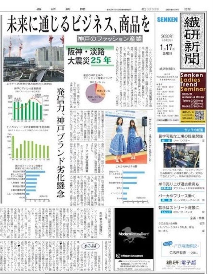 阪神・淡路大震災の震源地にある神戸市はファッションの街。その16年後の東日本大震災が襲った東北もテキスタイルや縫製の産地でありファッションとの関わりが深い。図らずも、二つの大きな震災の報道に記者として関わり、今も思い出すことがある。