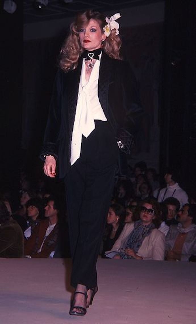 「イヴ・サンローラン」サファリルック、フォークロアルックなど、斬新なスタイルを次々に発表したサンローランは、〝モードの帝王〟と呼ばれた。マスキュリンなパンツスーツも代表するスタイル