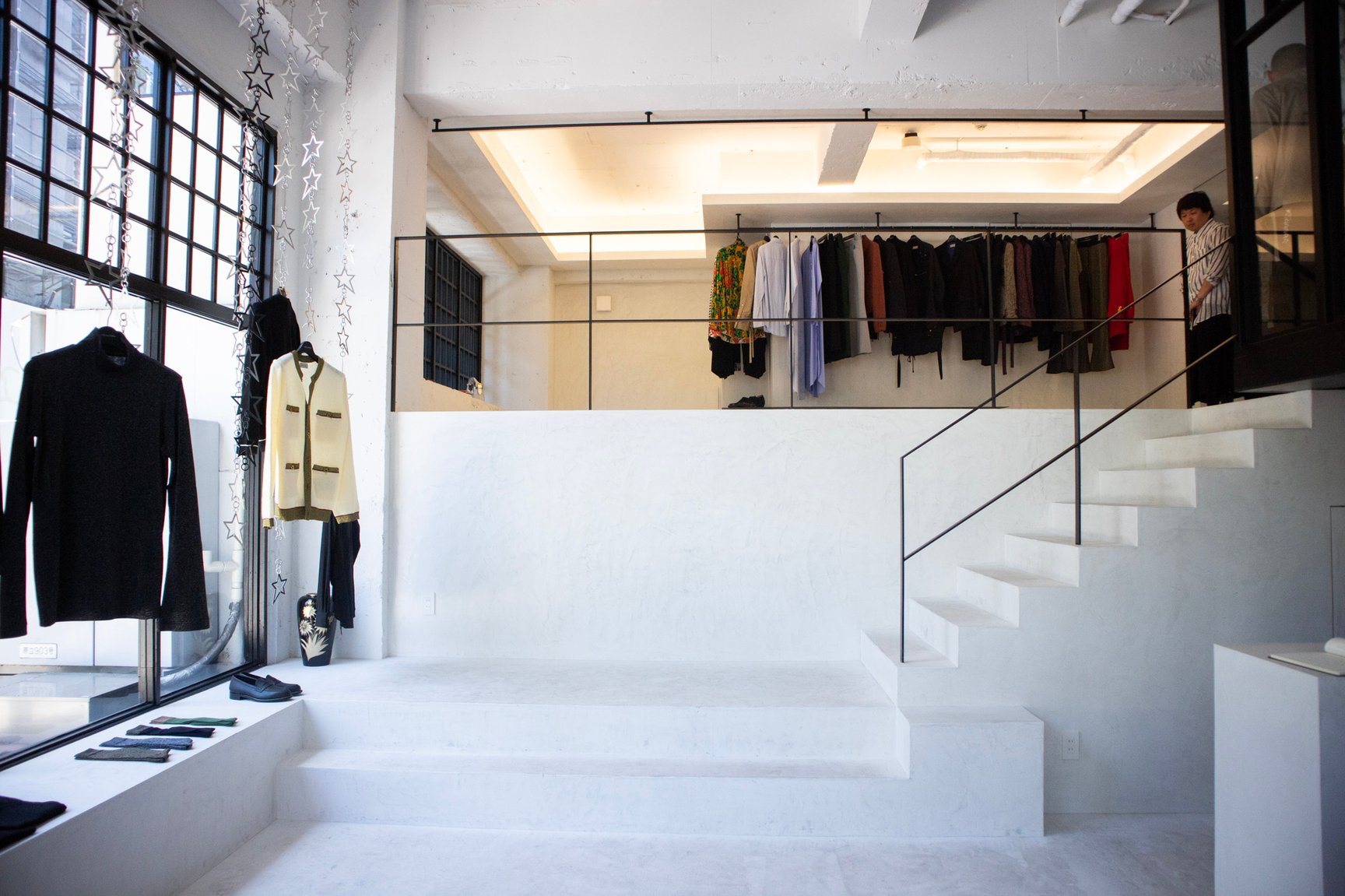 店内は、1階と中二階の2フロアで構成。合計約80平方メートルほどの店舗面積にブランドのフルラインナップや店舗限定アイテムを揃える。ゆくゆくは山岸がクリエイションに感銘を受けたブランドのアイテムを買い付け、セレクトショップのような感覚で販売していく計画だ。
