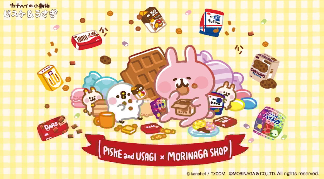 ファッション×IP以外にもこれまでにさまざまなIPコラボを仕掛けられてきた。人気イラストレーター「カナヘイ」氏がデザインするキャラクター「PISUKE&USAGI」と森永製菓とのコラボでグッズの企画製作なども手掛けた。参照元:「カナヘイの小動物」公式サイト