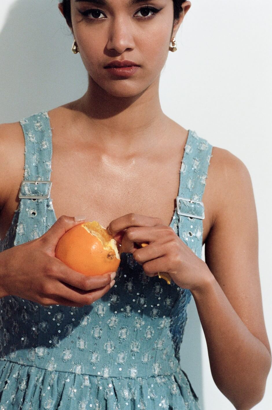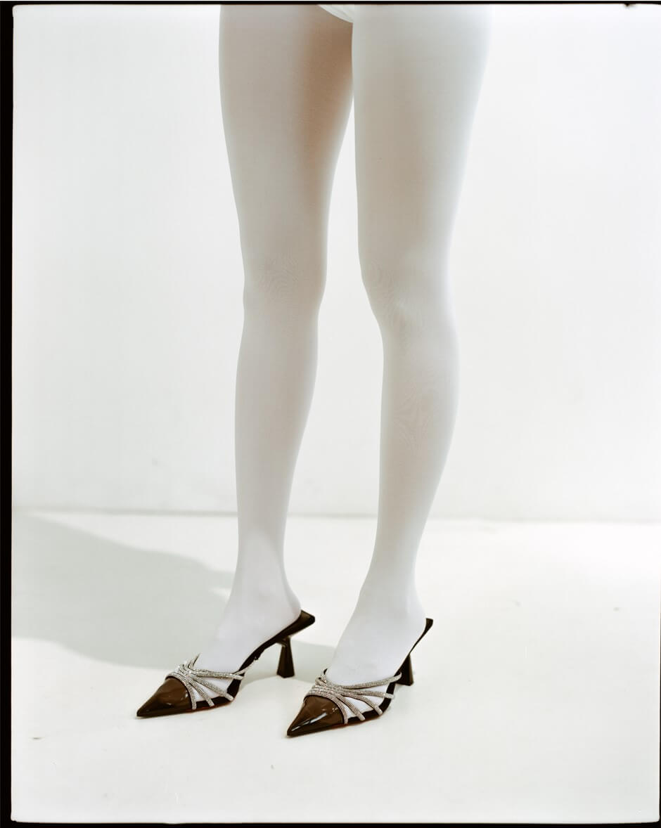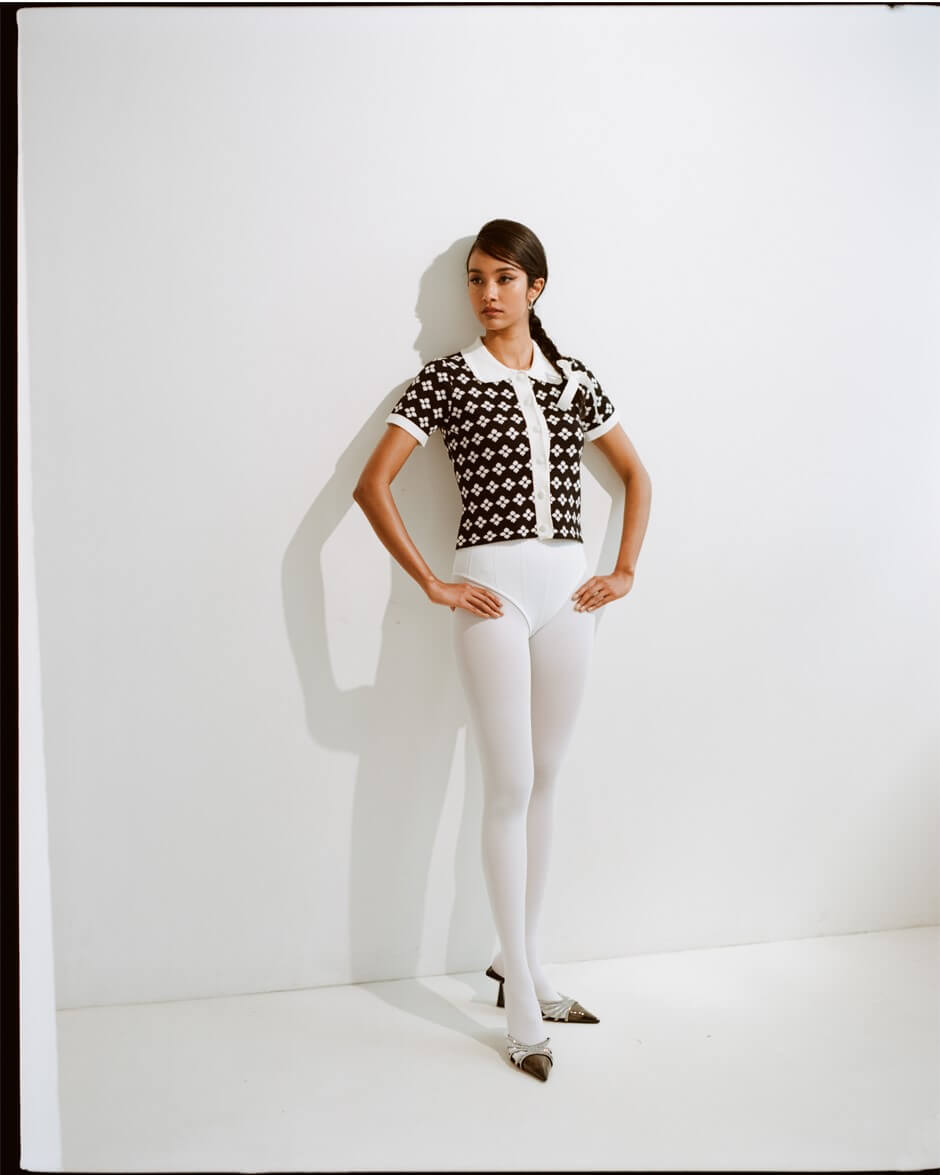 top by KITRI, bodysuit by ZARA, tights, shoes and earrings stylist’s own