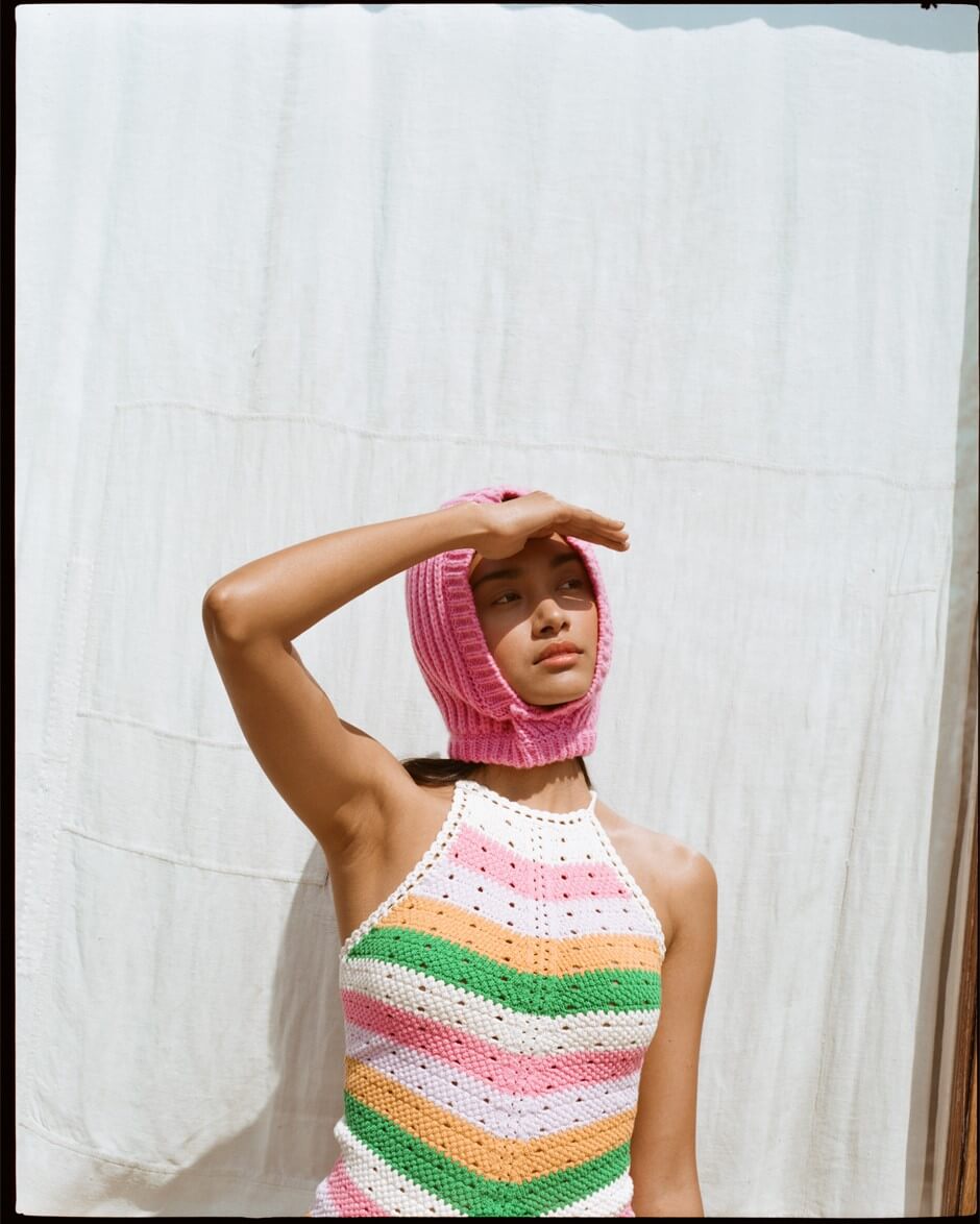 Top Photo:left - top by DAILY PAPER, skirt and leg warmers by ASOS, mask hat by GLAMOROUS, tights and shoes stylist’s own right - dress by KITRI