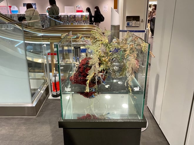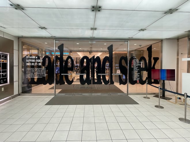「made and seek」というタイトルは、‟hide and seek(=かくれんぼ)”からの造語だという。北海道出身、あるいは北海道を拠点に活動している23組のアーティストの作品が札幌パルコ館内のいたるところに設置されており、まるでかくれんぼのように、パンフレット片手にそれらを探索するという仕掛けだ。展示される作品は、立体、インスタレーション、写真、映像、サウンド、イラストレーションなど、多岐にわたっている(出展者については公式インスタグラム参照)。