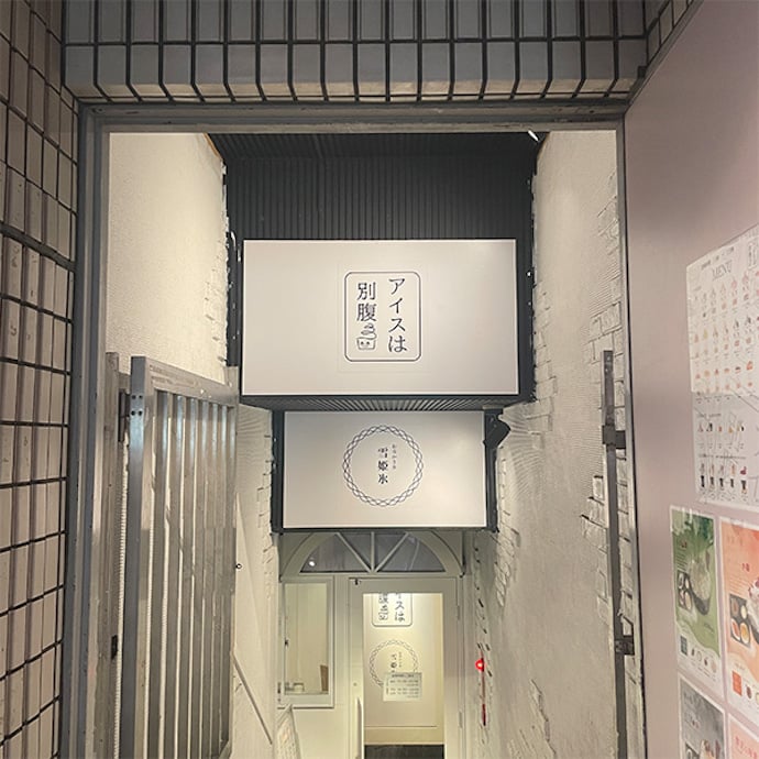 看板の左にある階段を下りていった地下1階に「アイスは別腹 渋谷店」があります。