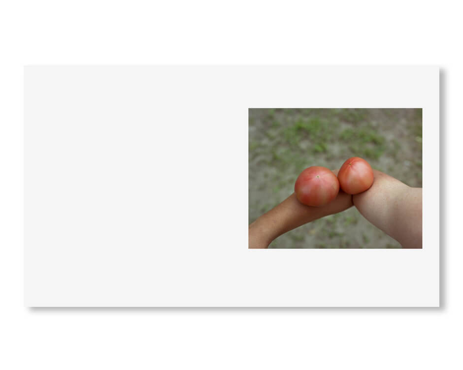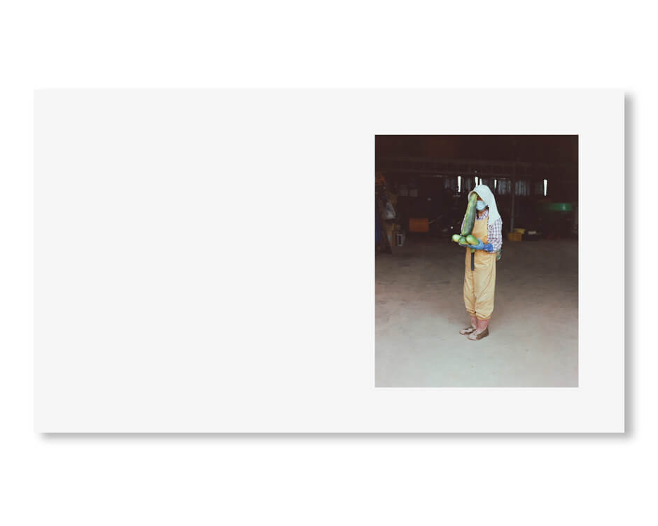 横浪は被写体に対しストレートにカメラを向け、ごく普通の見慣れた農具や身体、現地の農産物を、印象に強く残る風景へと変容させている。