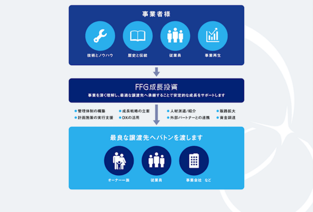 そんな立花屋の救世主となったのが地場金融機関ふくおかファイナンシャルグループ(FG)傘下の投資専門子会社、「FFG成長投資」だ。同社は2021年に改正された銀行法(地域の事業会社に100%出資することが可能=企業を買収して経営に関与し事業計画の立案・実行に着手)を活用し、負債を抱えた中小企業を買収して経営の立て直しに取り組み始めた。立花屋はその投資案件の第4号になる。