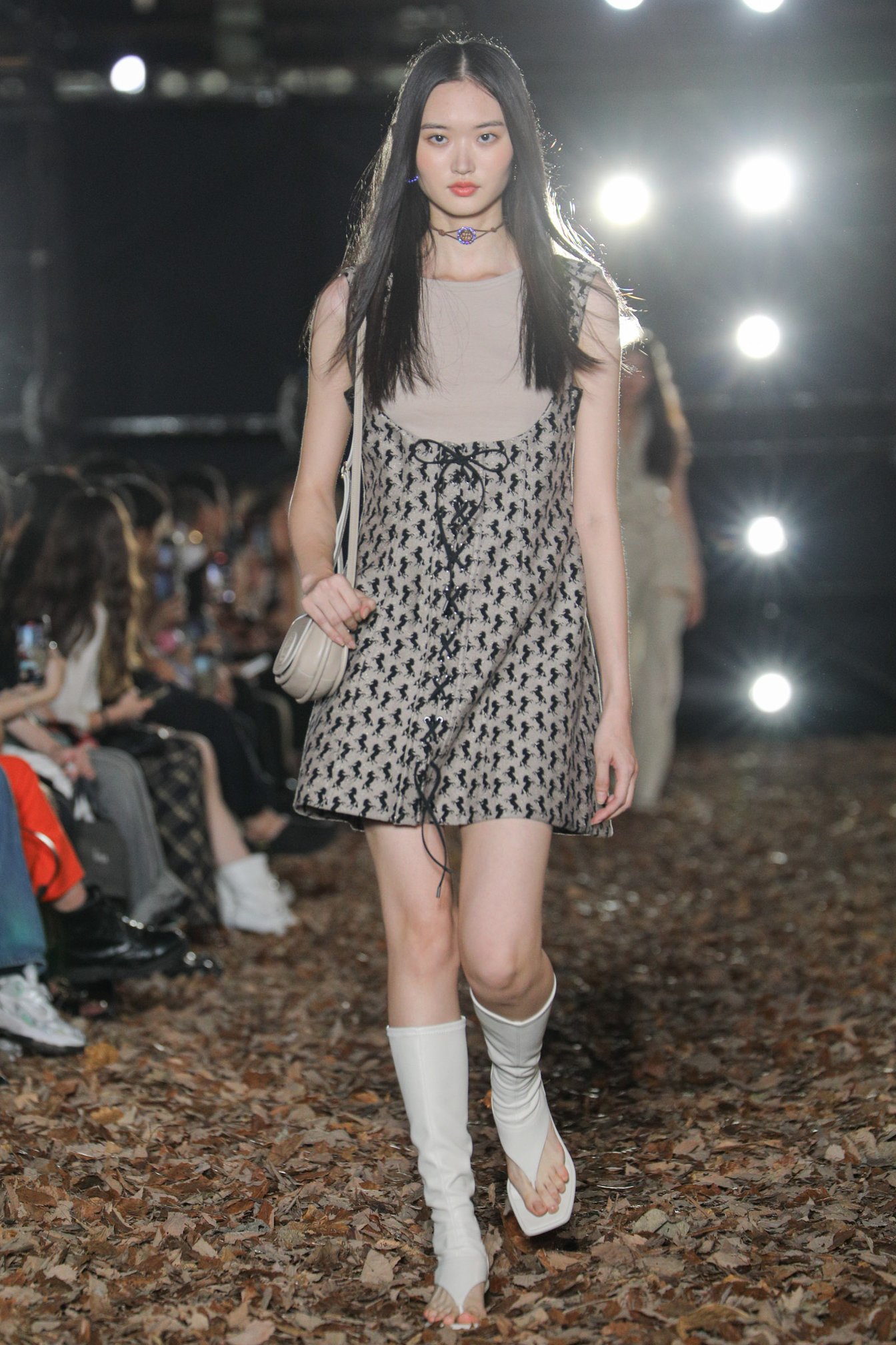 岩田翔と滝澤裕史が手掛ける「ティート トウキョウ(tiit tokyo)」が、新豊洲Brilliaランニングスタジアムでランウェイショーを開催し、2024年春夏コレクションを発表した。ショーには、ブランド初となるアクセサリーアイテムが登場。落ち葉が敷き詰められたベージュトーンのランウェイを、大きなビジューパーツが華やかなチョーカーやピアス、レザーバッグを着用したモデルが歩いた。