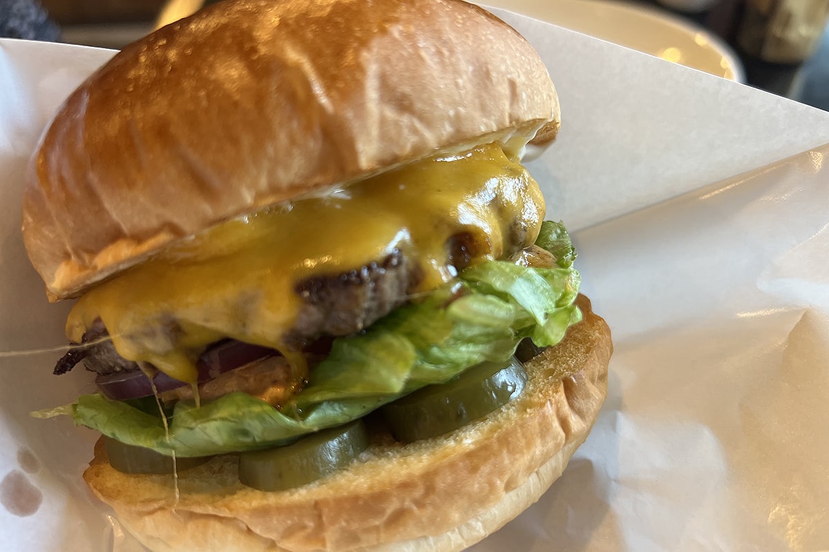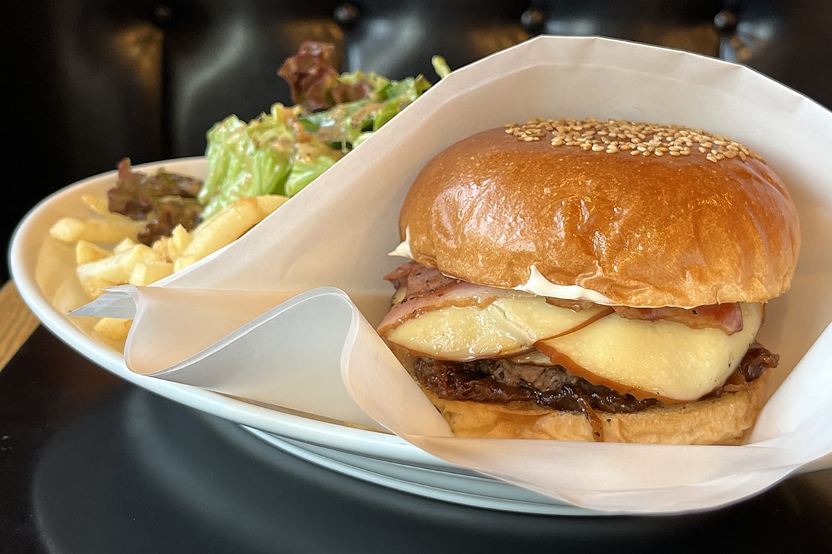 見た目から、クラシックの名前に恥じない風格。美しく挟まれた具材もお見事で、チェダーチーズのメルト感もたまらないハンバーガーだ。ピクルス、みずみずしいレタスと紫玉ねぎのスライスのシャキシャキ感がアクセントとなり、肉の旨味を際立たせる。