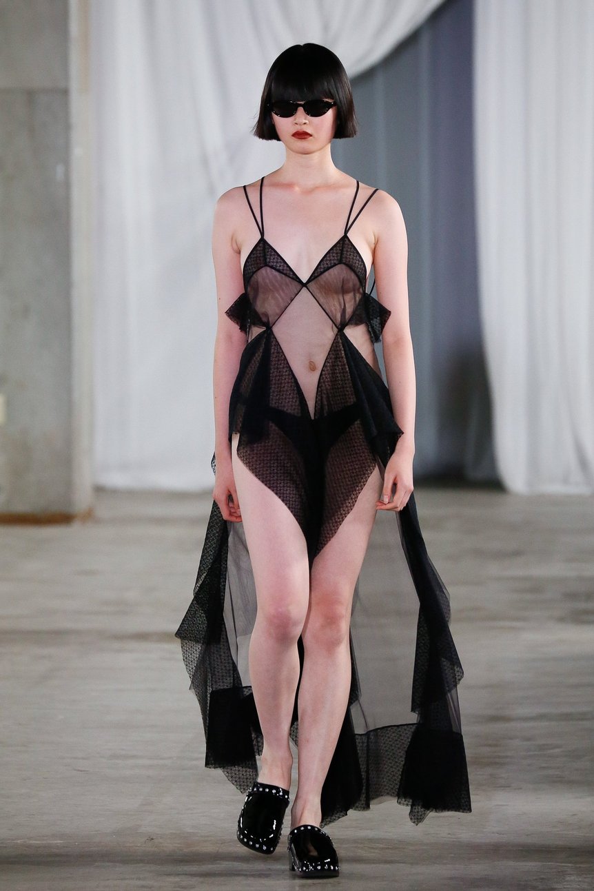 そして初日の最後を飾った「フェティコ(FETICO)」。女性からの支持がある人気のブランド。会場にはフェティコの服を着ている人が多く、ファンからのブランド愛を肌で感じた。今シーズンは露出度が多いアイテムが多く、男性である私目線だと「エロティズム」としてのレイヤーが入ってしまいファッションとして真正面から見ることができなかったが、その中でも「エロティズム」という男性から消費されてしまう「性」よりも女性であることをポジティブに働かせ、クールという意味も込めた「セクシー」と感じ取れるドレスも登場。露出度の多さと女性らしさを打ち出しているところを見ると「女性性をポジティブに」という意図があったことは私でも理解ができた。このブランドで気になったのは「どんな女性をポジティブにしたいのか」。モデルは全て細身のいわゆる「従来の美しい体型」をしていた。新作発表を展示会ではなくショー形式を選んでいるのであれば、もう少し風呂敷を広げて、様々な身長や体格、はたまたトランスジェンダーなど「女性性」を持ったモデルが登場すれば、よりメッセージの強度を持ったアプローチができたのではないだろうか。男性の私にも「女性性をポジティブに」という意図を直感的に汲み取れたであろう。