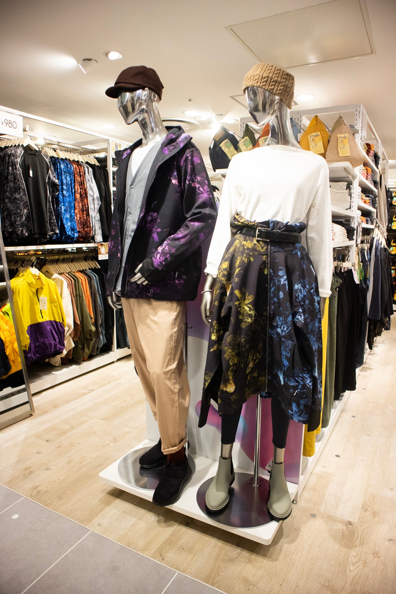 ワークマン カラーズ店舗のコンセプトは「シン、ジブン色」。ワークマンの1番の強みである機能性をあえて打ち出さず、「デザイン性だけで選ばれる店舗作り」を目標に掲げる。店内では、トレンドを意識した「life is」、原色とブラックのアイテムを組み合わせる「WORKMAN‐Ship」、都会的でタフなウィメンズアイテムを展開する「tough」、価値観や用途のシェアを提案する「Share,Share,Share,」といった4つのカテゴリーに分けて全17体のマネキンを設置し、店舗の特徴を表現。担当者は「ワークマンの1番の強みは機能性だが、それ以外にも長所を育てていくことでブランド全体の成長につながる。あえて自社の強みを隠して、デザイン性だけで勝負できる店舗を作ることがワークマン カラーズ事業の目標」と話す。