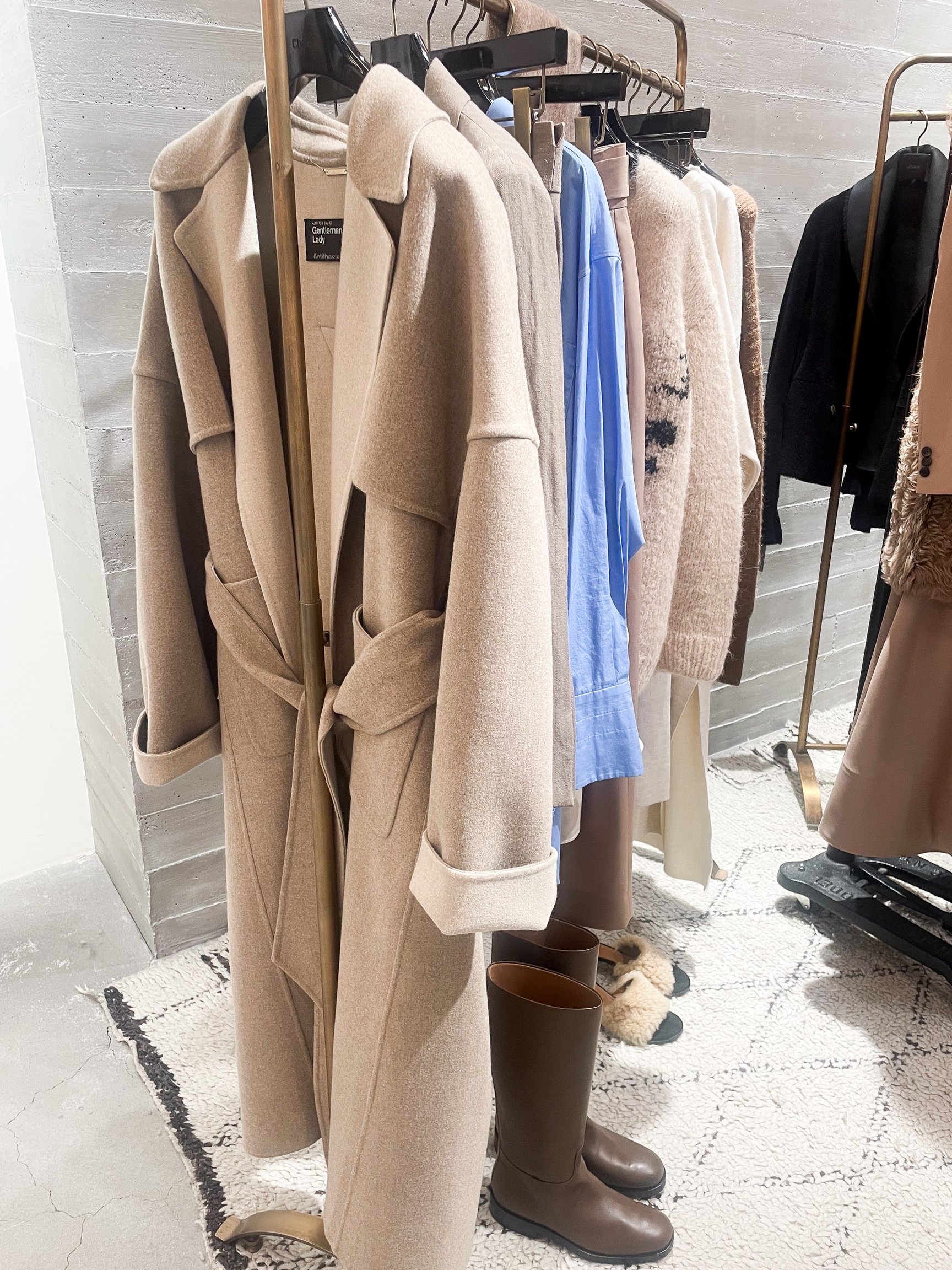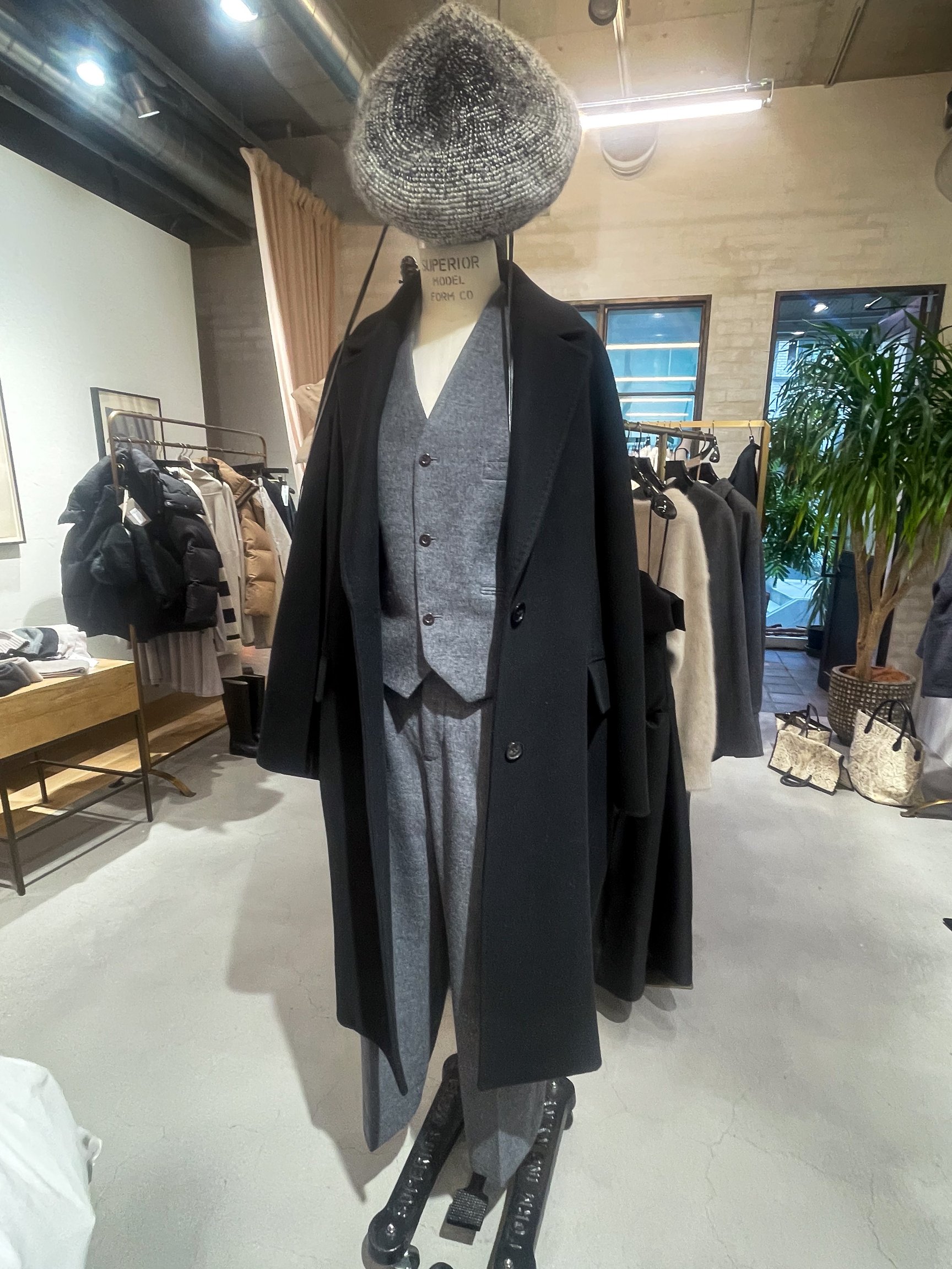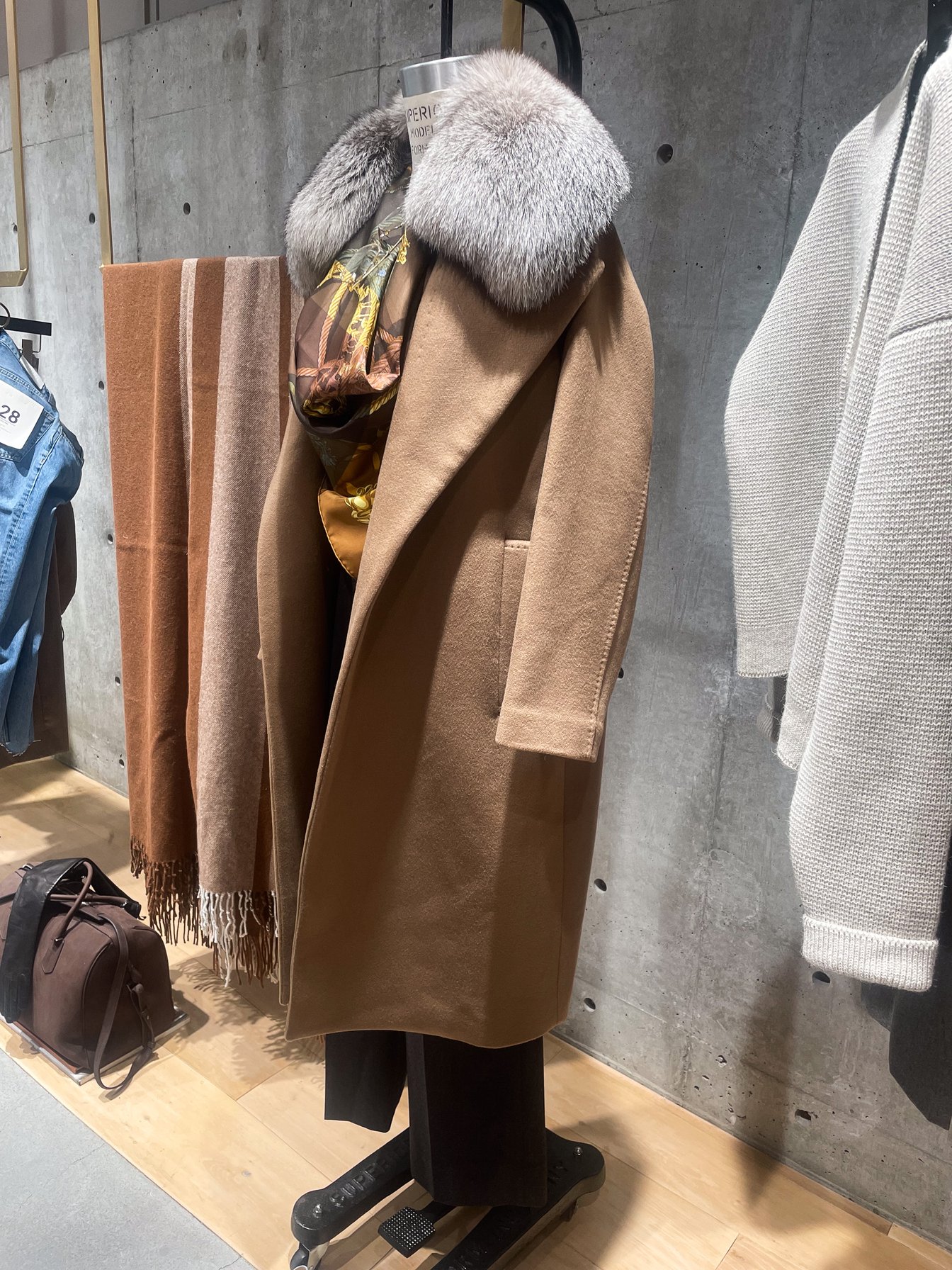 カシミヤ100%、裏地にはシルクを採用したコートは40万円台で展開している