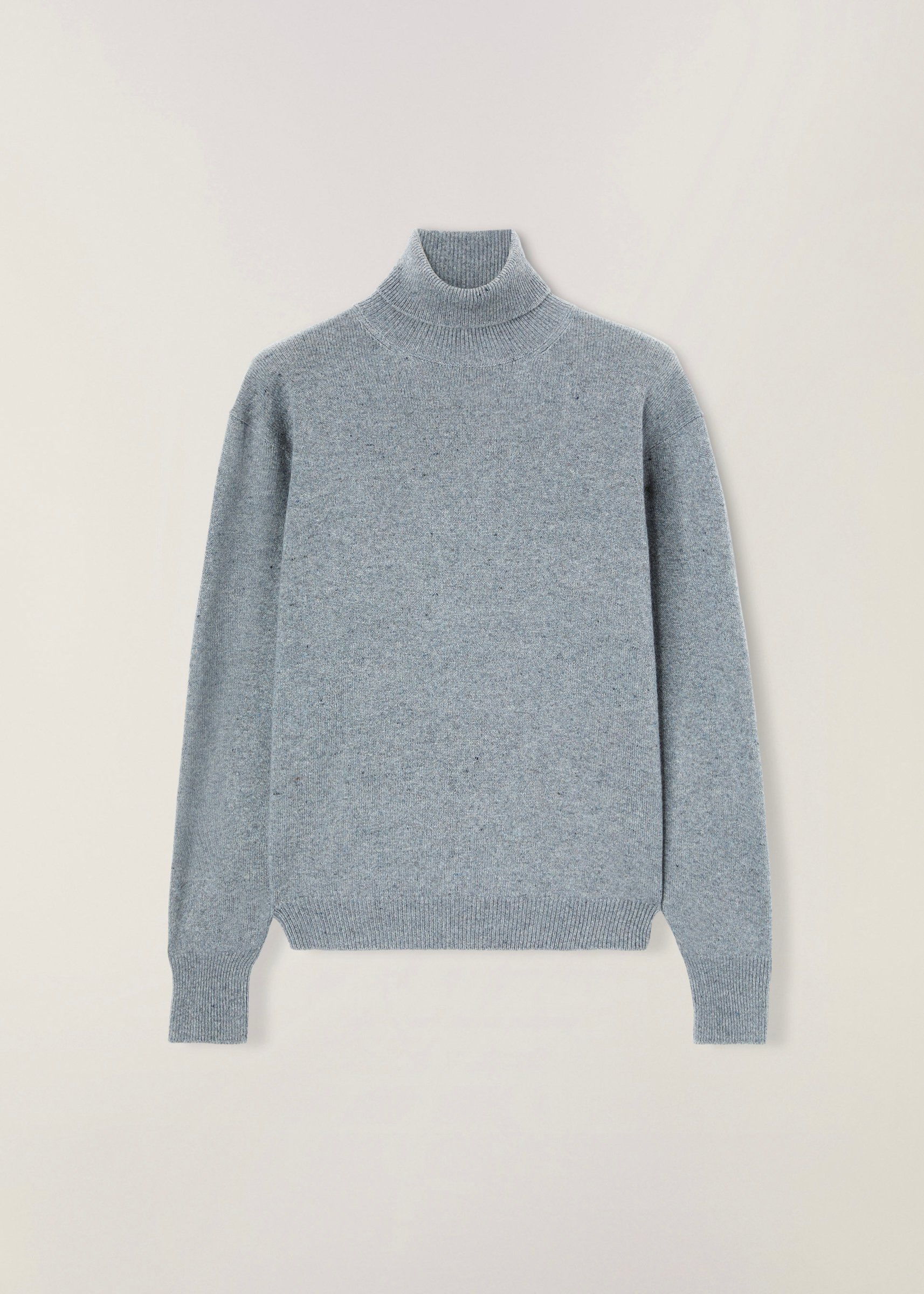 ファーストコレクションでは、ウェアやシューズなど30型以上をラインナップ。ヴァージンカシミヤと再利用した繊維をミックスした独自のメランジュのカラーパレットが特徴で、クールネック(16万8300円)、ポロシャツ(18万4800円)、タートルネック(25万1900円)、Vネック(23万4300円)の4型のセーターを中心に、ストール(8万9100円)、帽子(6万3800円)、テクニカルソールにカシミヤのアッパーを組み合わせた360gの軽量スニーカー(15万9500円/いずれも税込)などを揃えている。