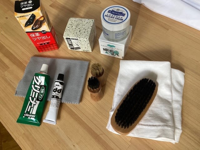1.メンテナンスの道具や汚れ落とし、クリームを準備