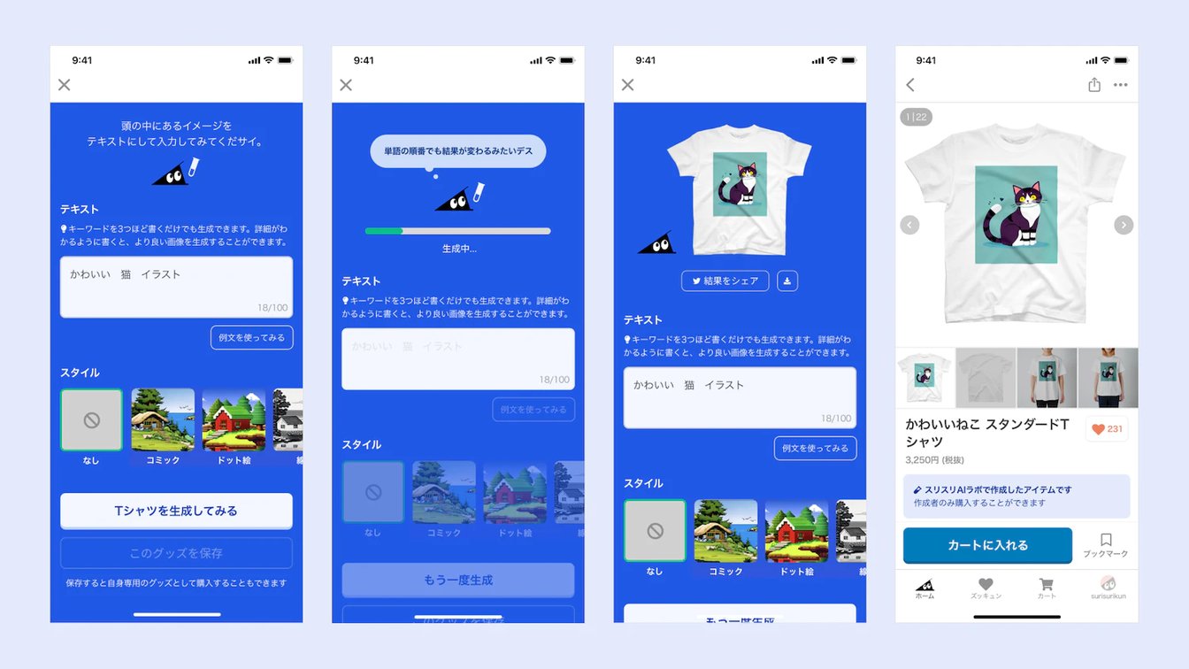 SUZURIでは先日、画像生成AI「Stable Diffusion」と連携した新サービス『スリスリAIラボ』をリリースした。現在SUZURIのiOSアプリ版のみにて提供している機能だというが、どのようなものなのか。